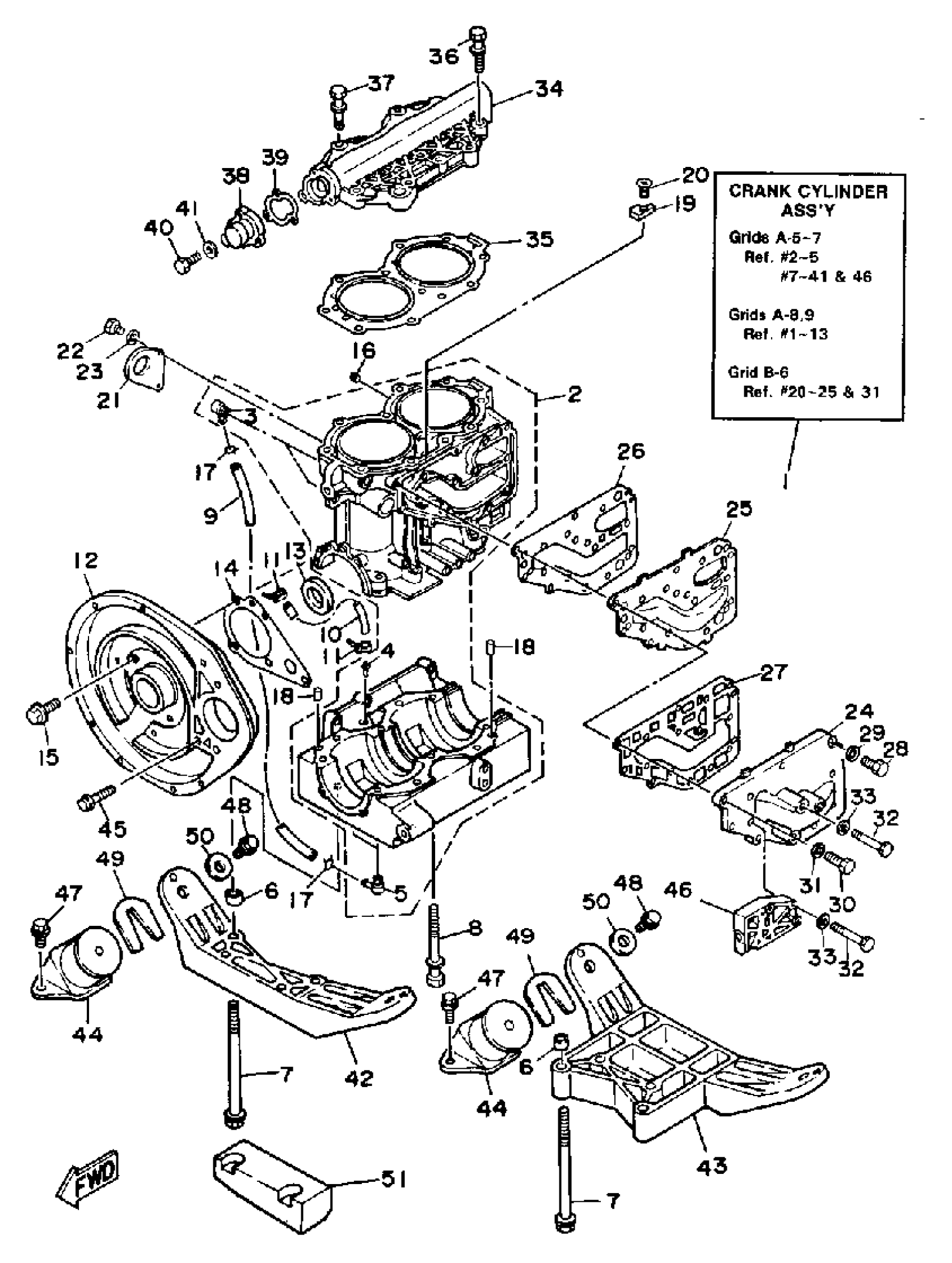 Yamaha WJ500F (WAVE JAMMER) 1989 CRANKCASE - CYLINDER Diagram