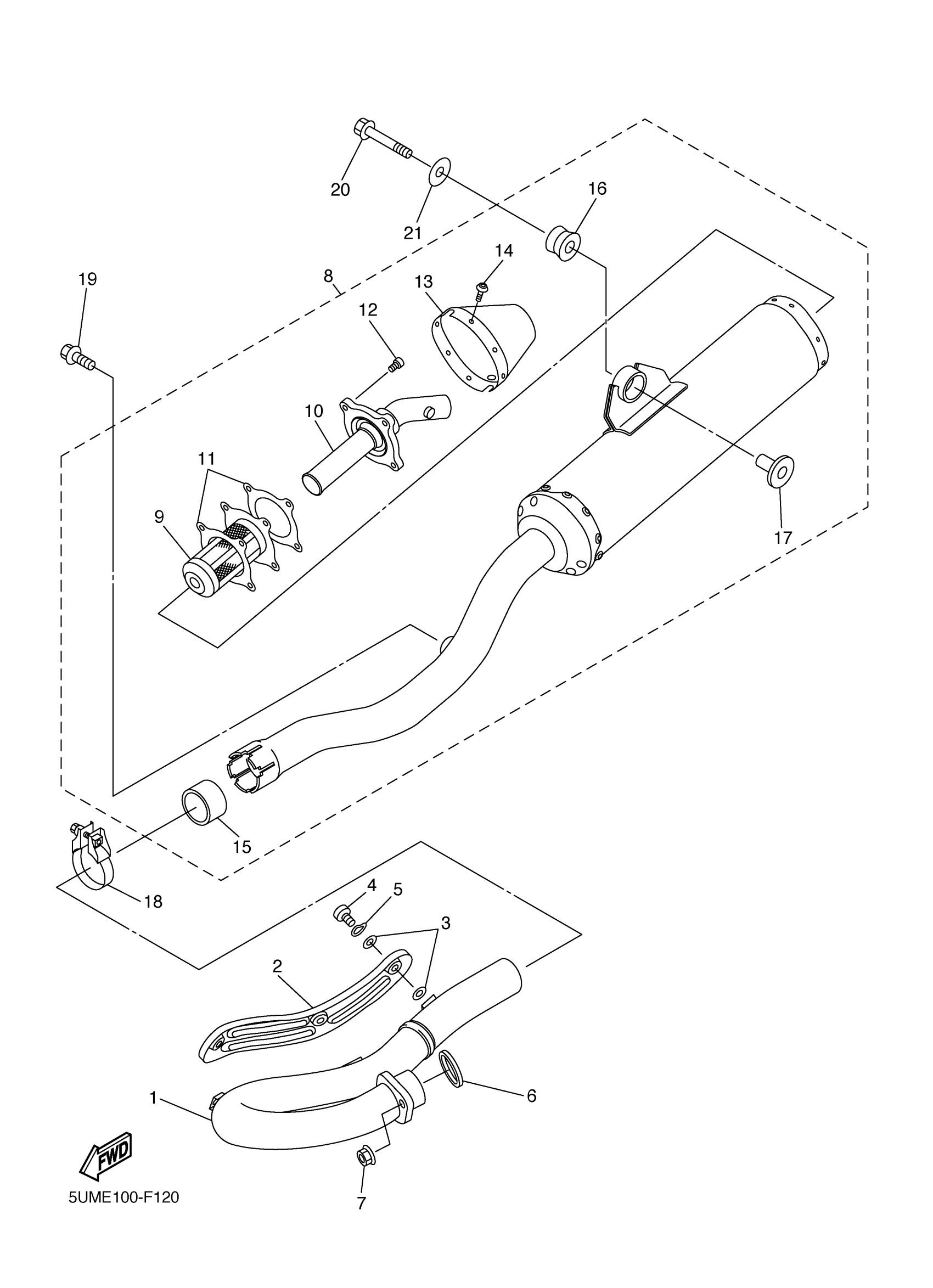 Yamaha WR250FA (WR250F) 1HC1 2011 EXHAUST Diagram