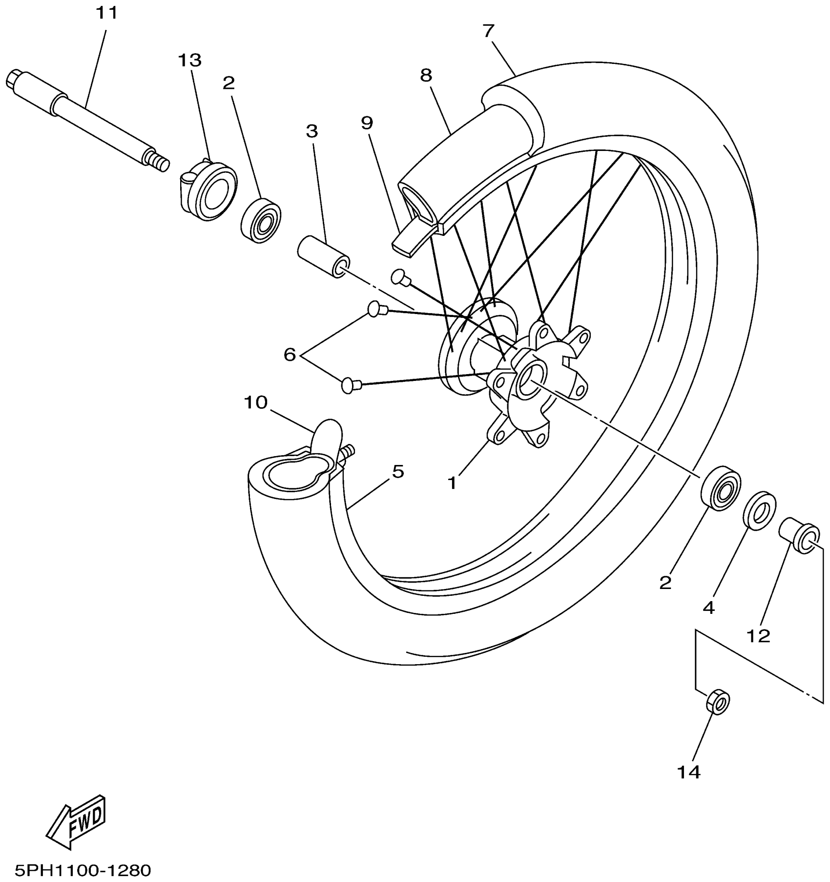 Yamaha WR250FN (WR250F) 5PH1 2001 FRONT WHEEL Diagram