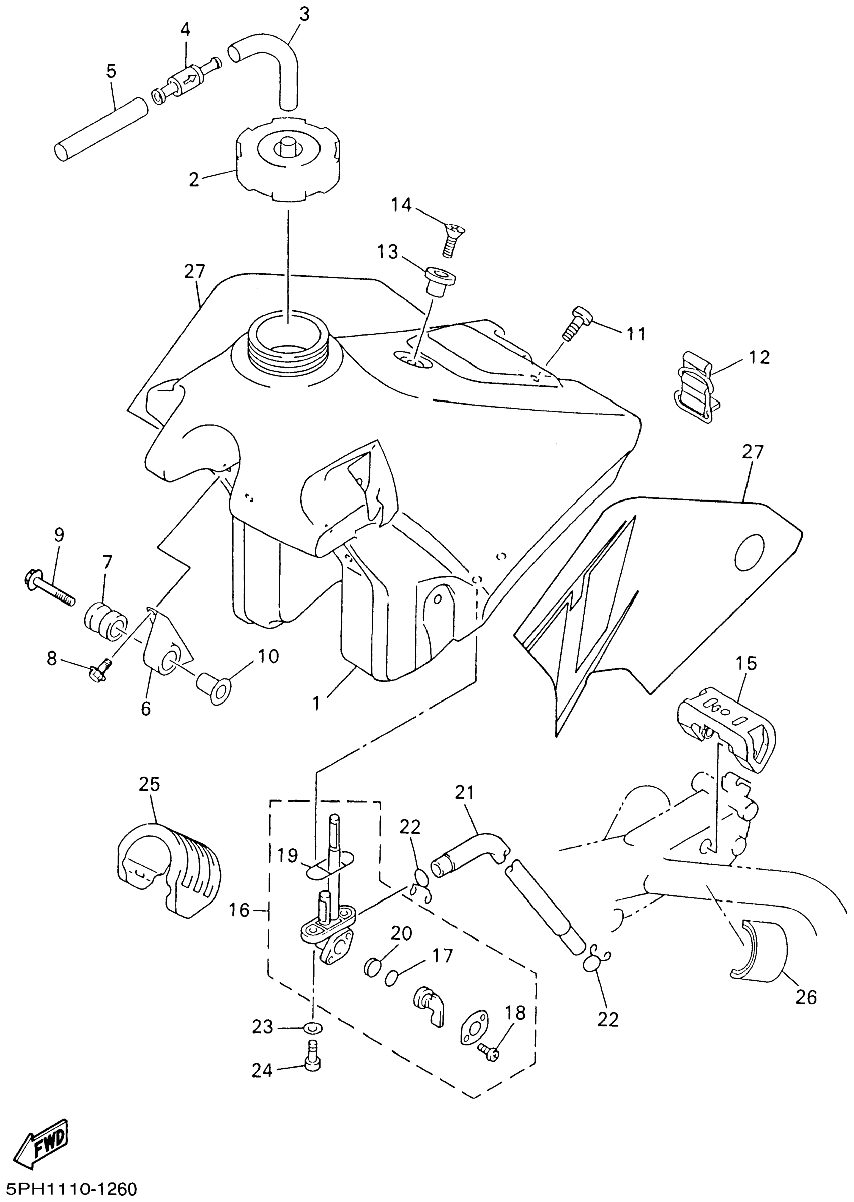 Yamaha WR250FN (WR250F) 5PH1 2001 FUEL TANK Diagram