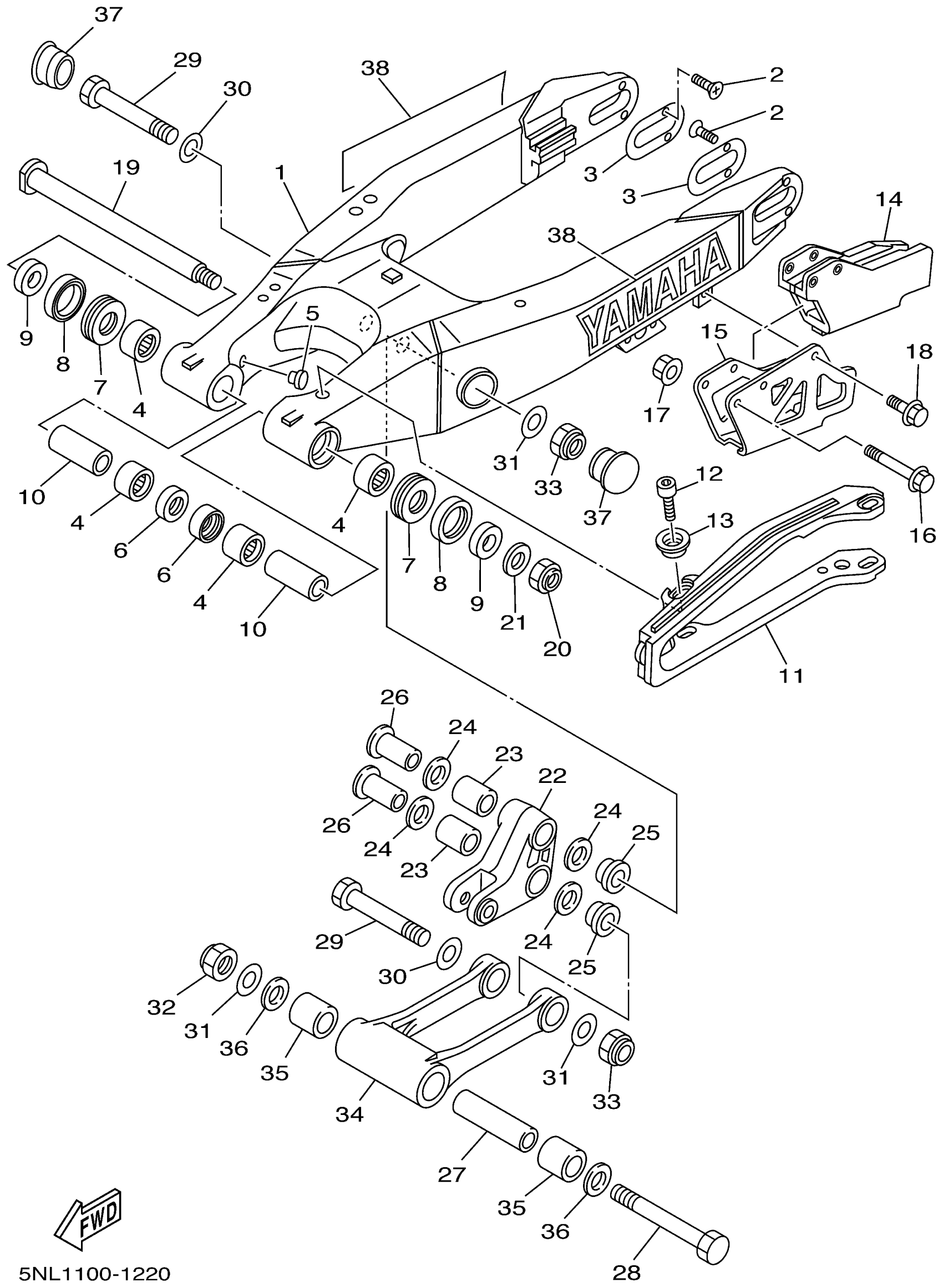Yamaha WR250FN (WR250F) 5PH1 2001 REAR ARM Diagram