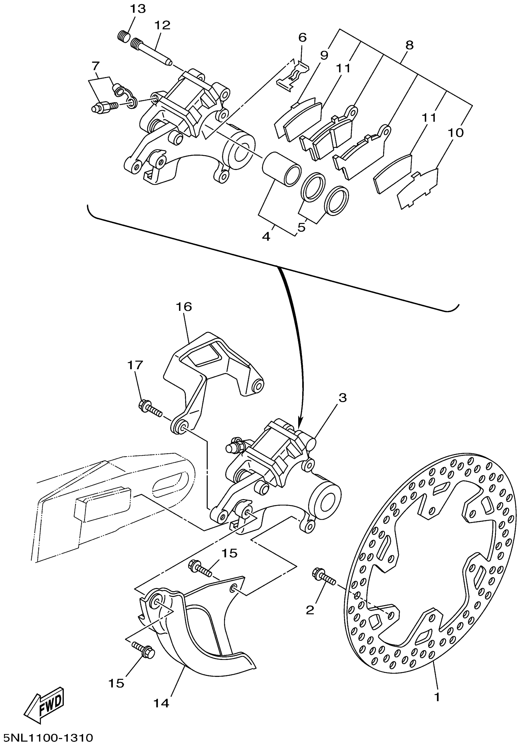 Yamaha WR250FN (WR250F) 5PH1 2001 REAR BRAKE CALIPER Diagram