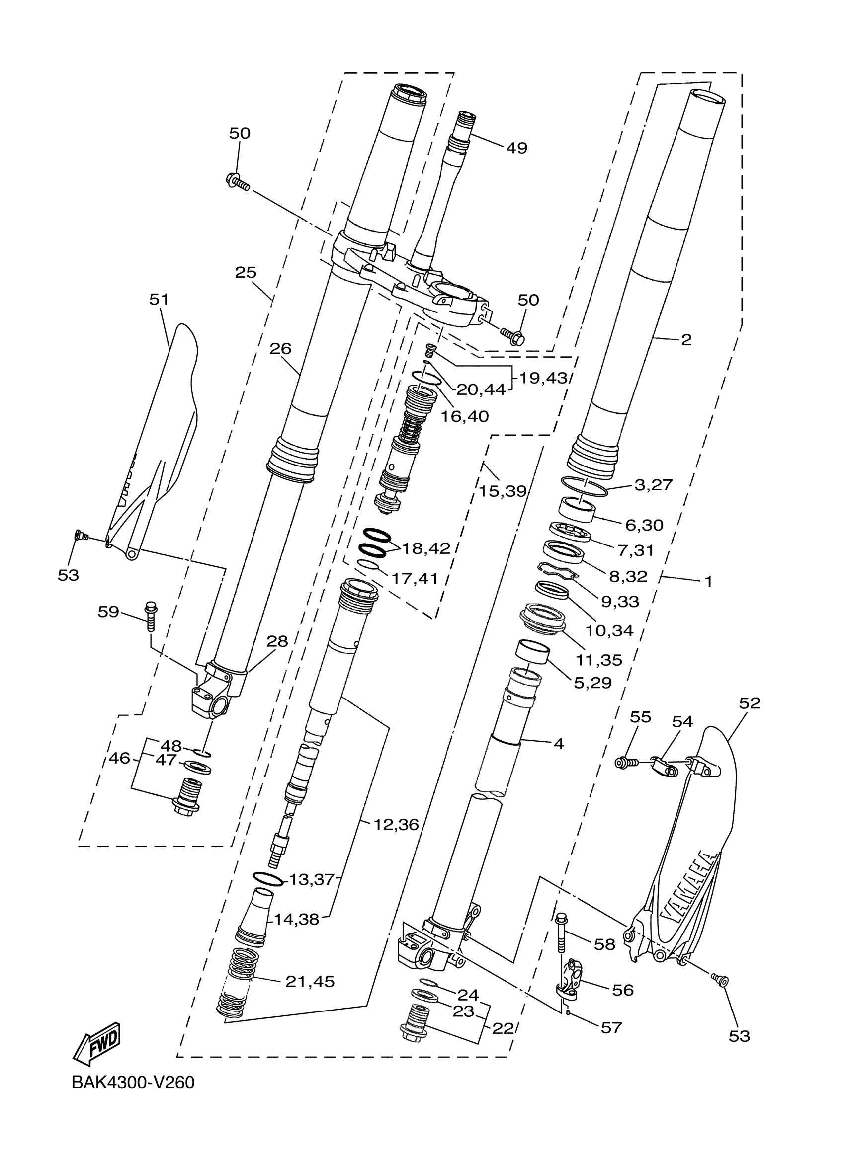 Yamaha WR250FP2 (WR250F) BAKG 2023 FRONT FORK Diagram