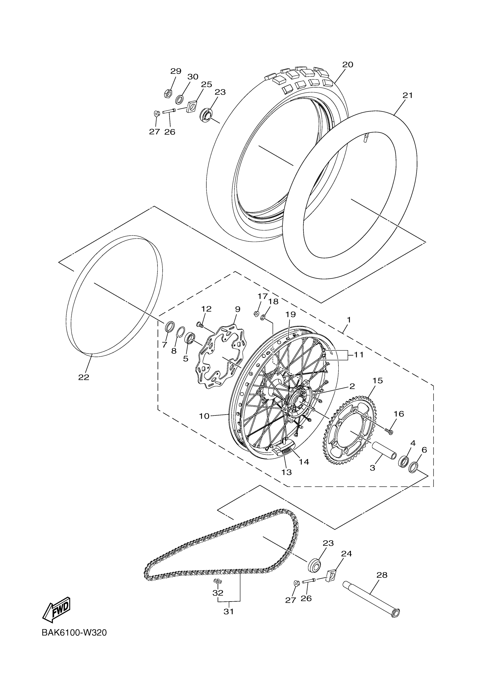 Yamaha WR250FP2 (WR250F) BAKG 2023 REAR WHEEL Diagram
