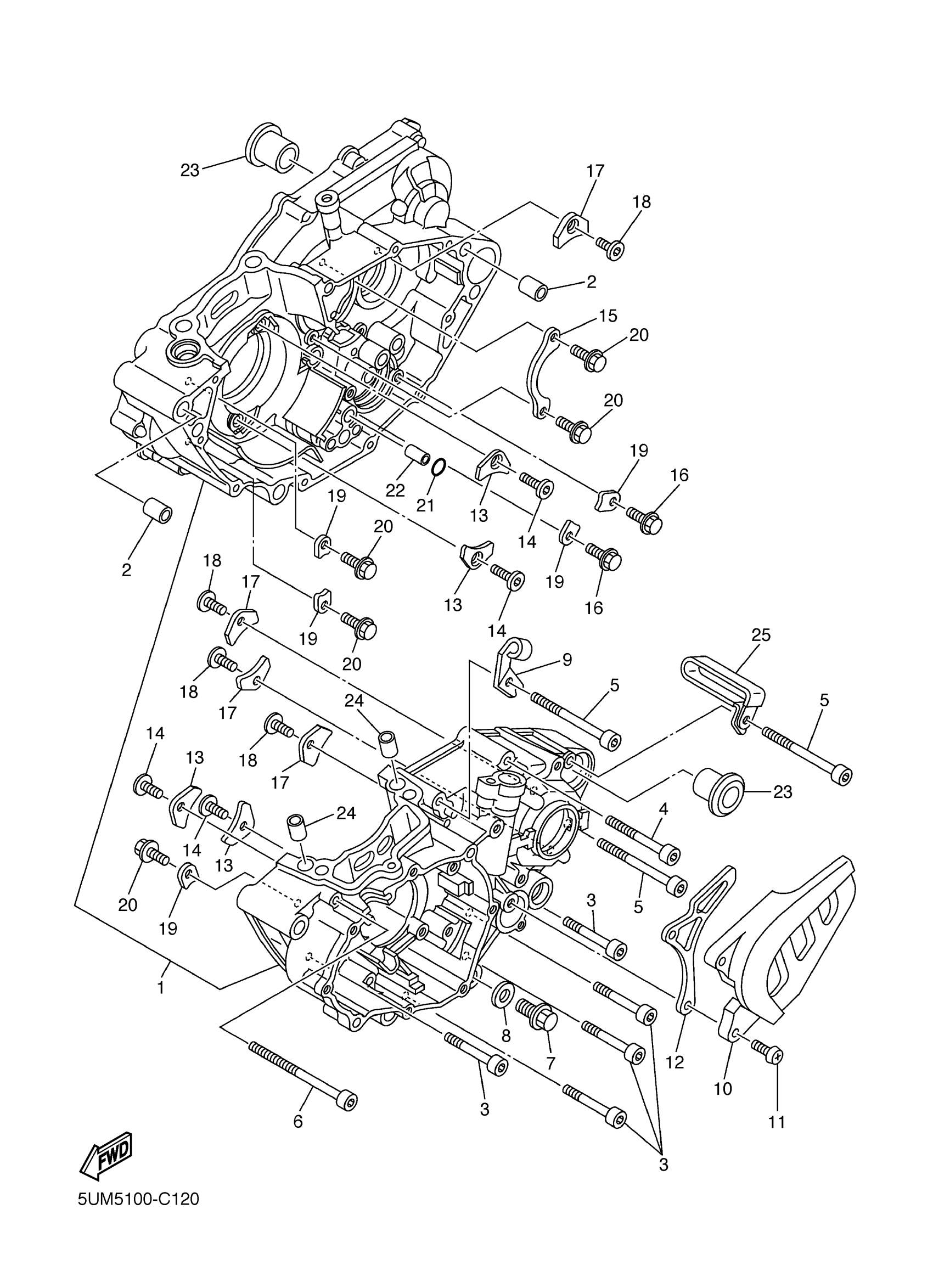Yamaha WR250FS (WR250F) 5UM5 2004 CRANKCASE Diagram