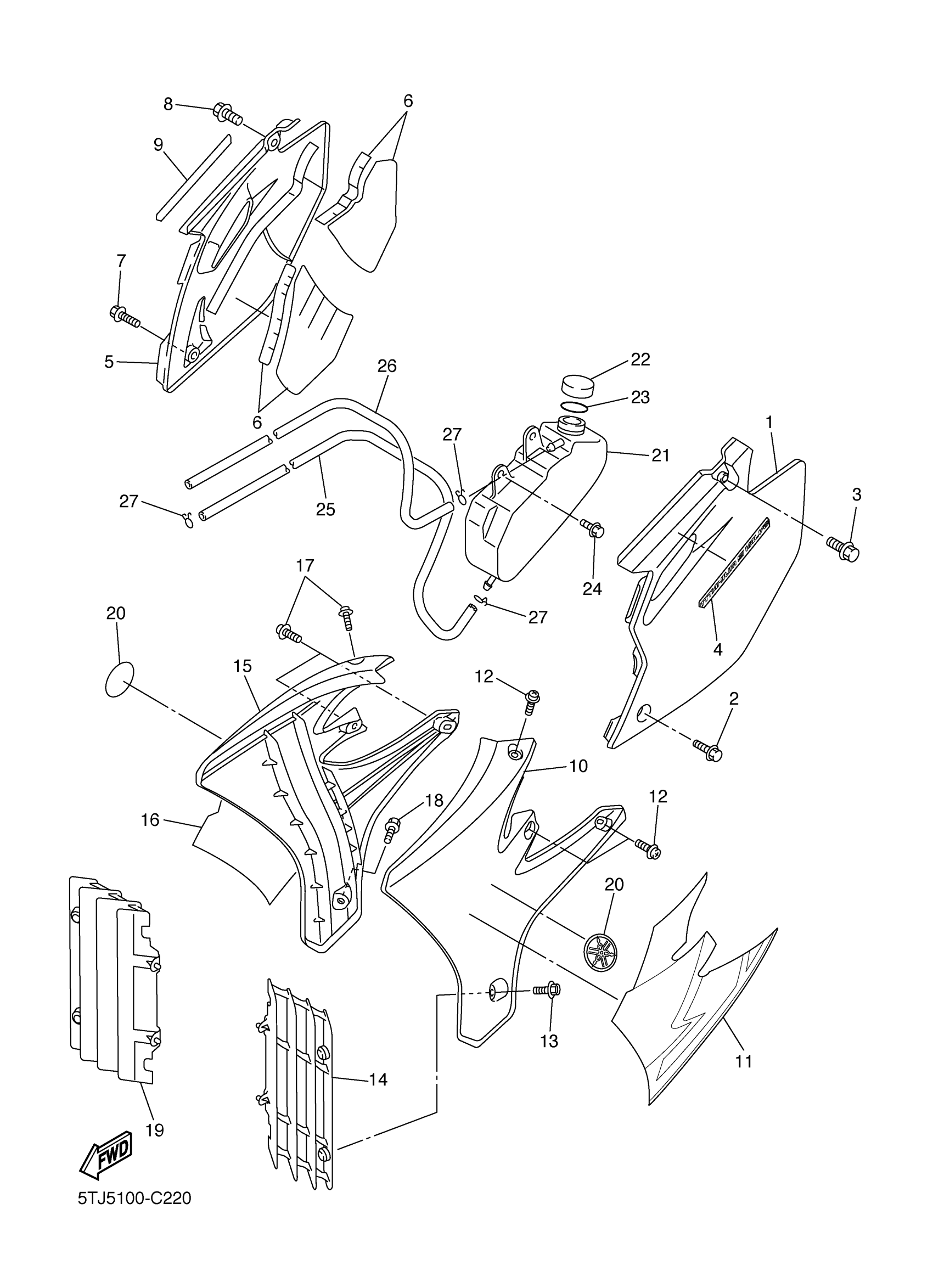 Yamaha WR250FS (WR250F) 5UM5 2004 SIDE COVER Diagram
