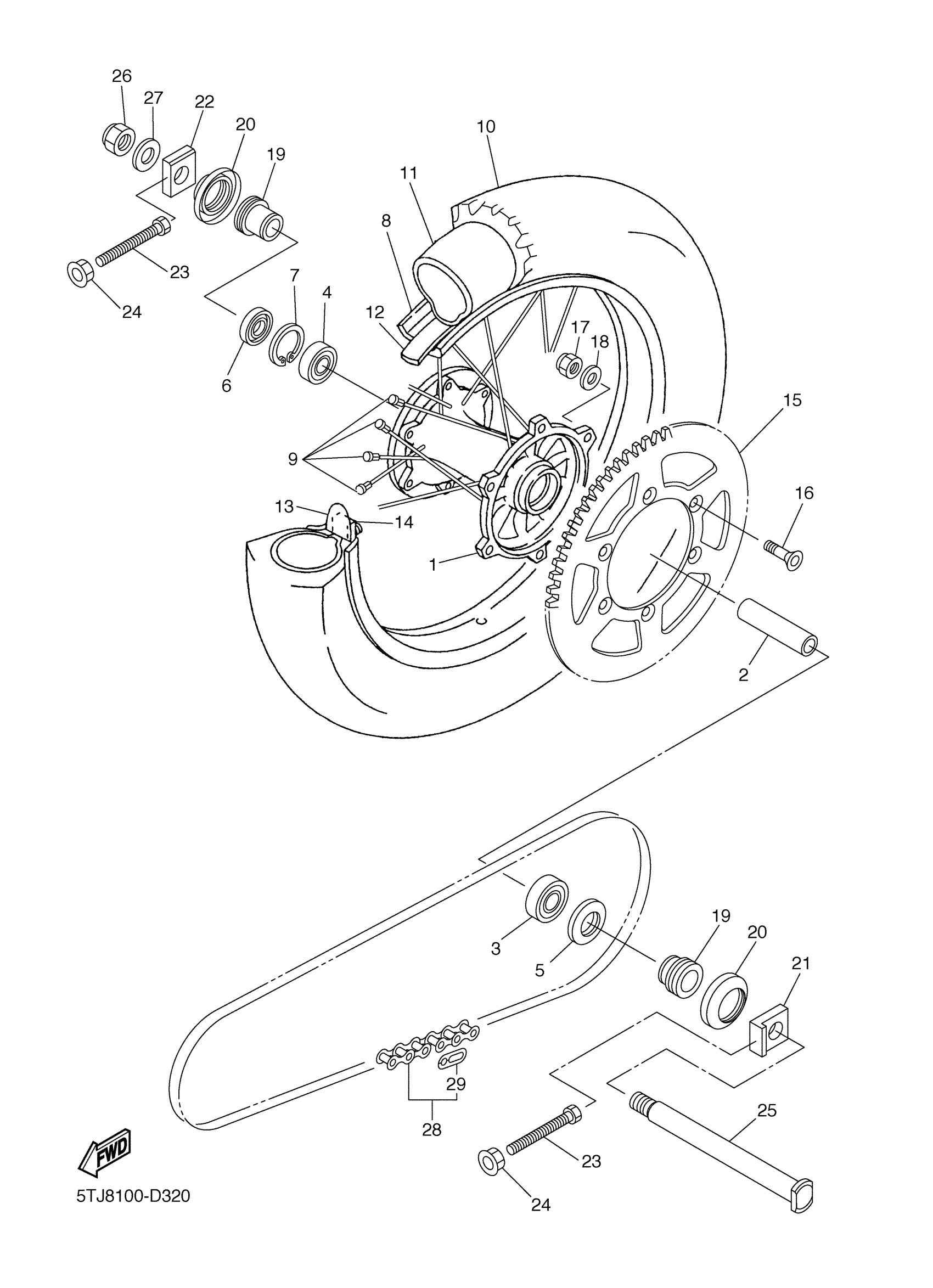 Yamaha WR250FT (WR250F) 5UM8 2005 REAR WHEEL Diagram