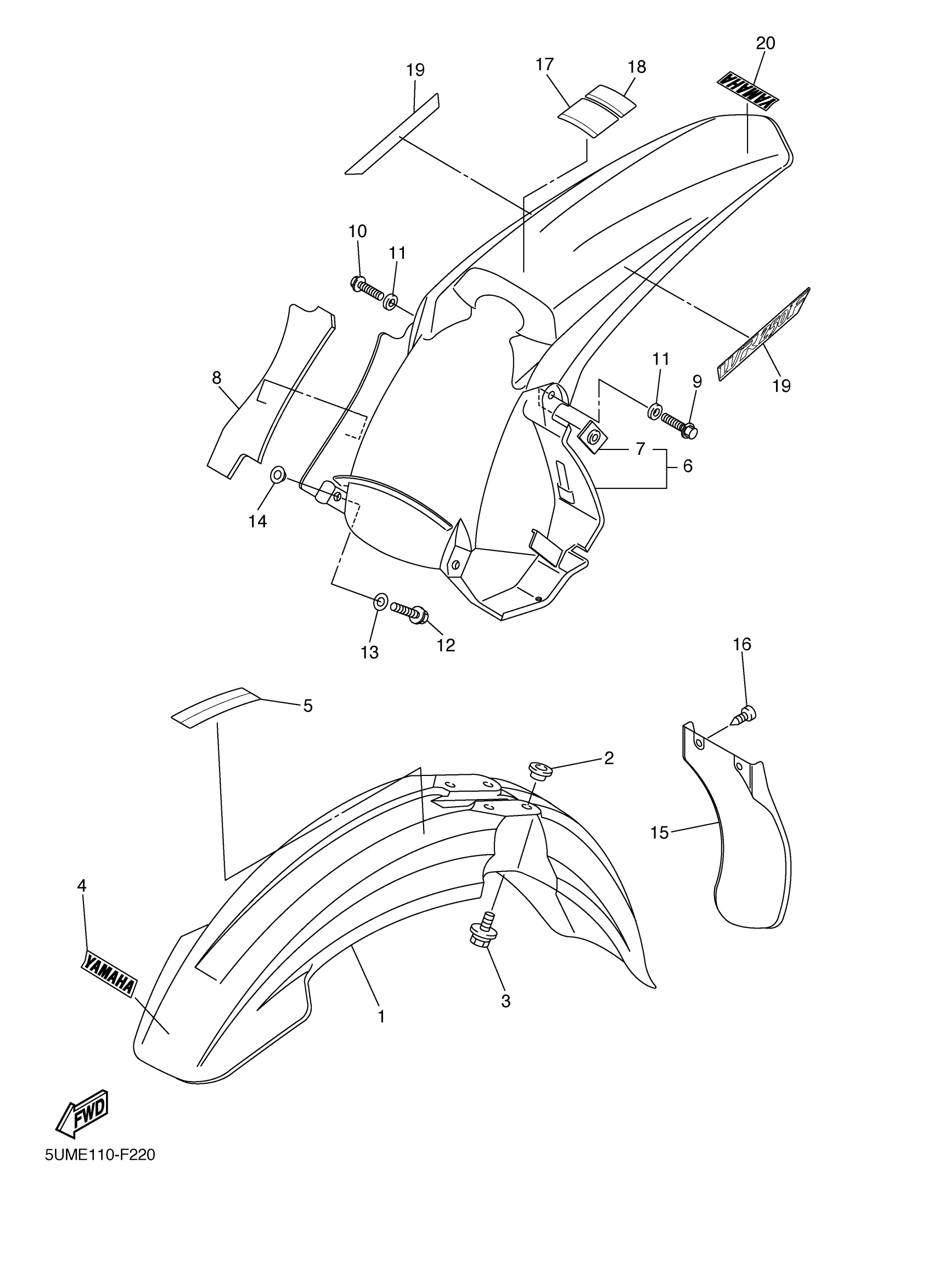 Yamaha WR250FW (WR250F) 5UME 2007 FENDER Diagram