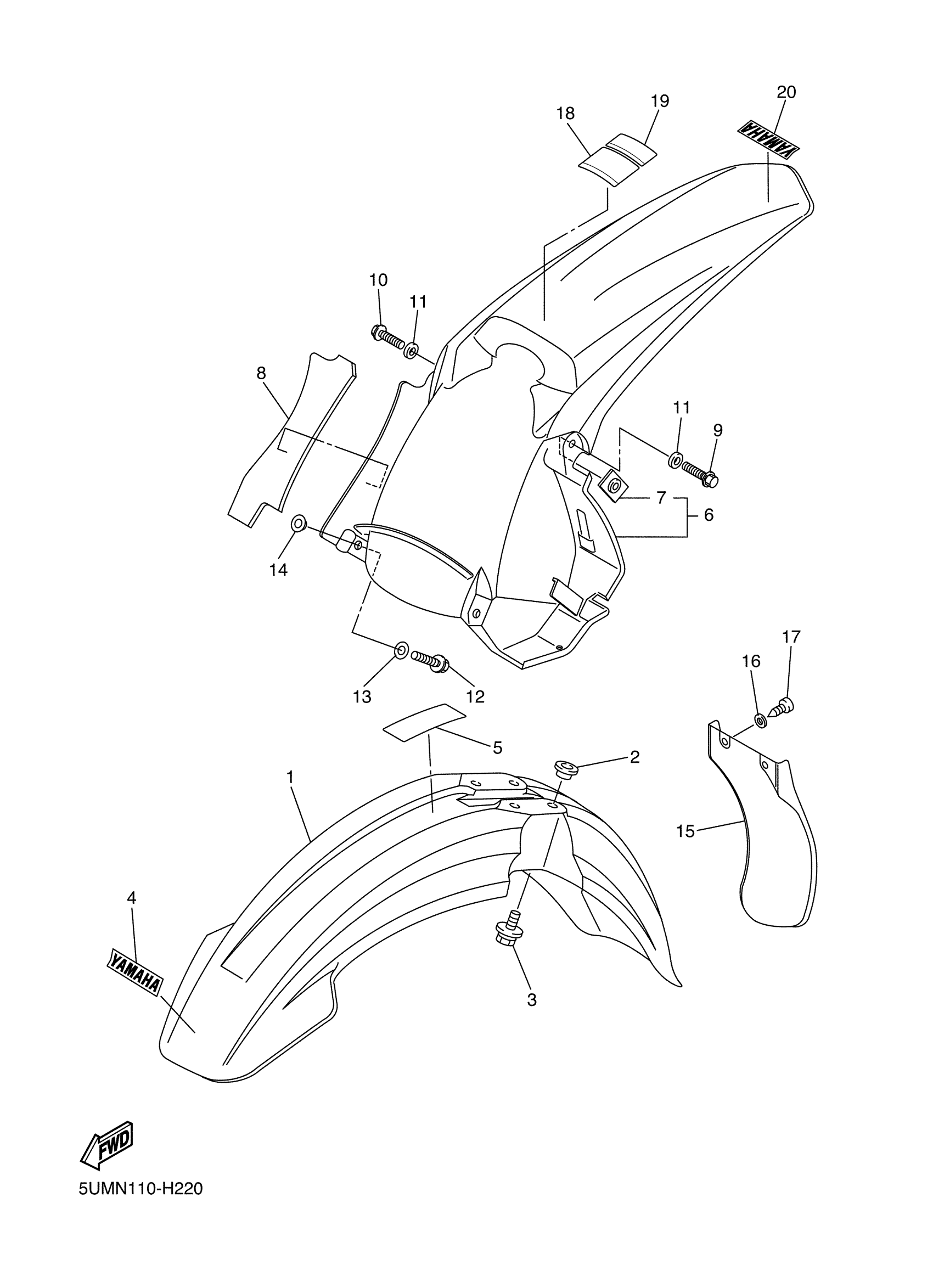 Yamaha WR250FY (WR250F) 5UMN 2009 FENDER Diagram