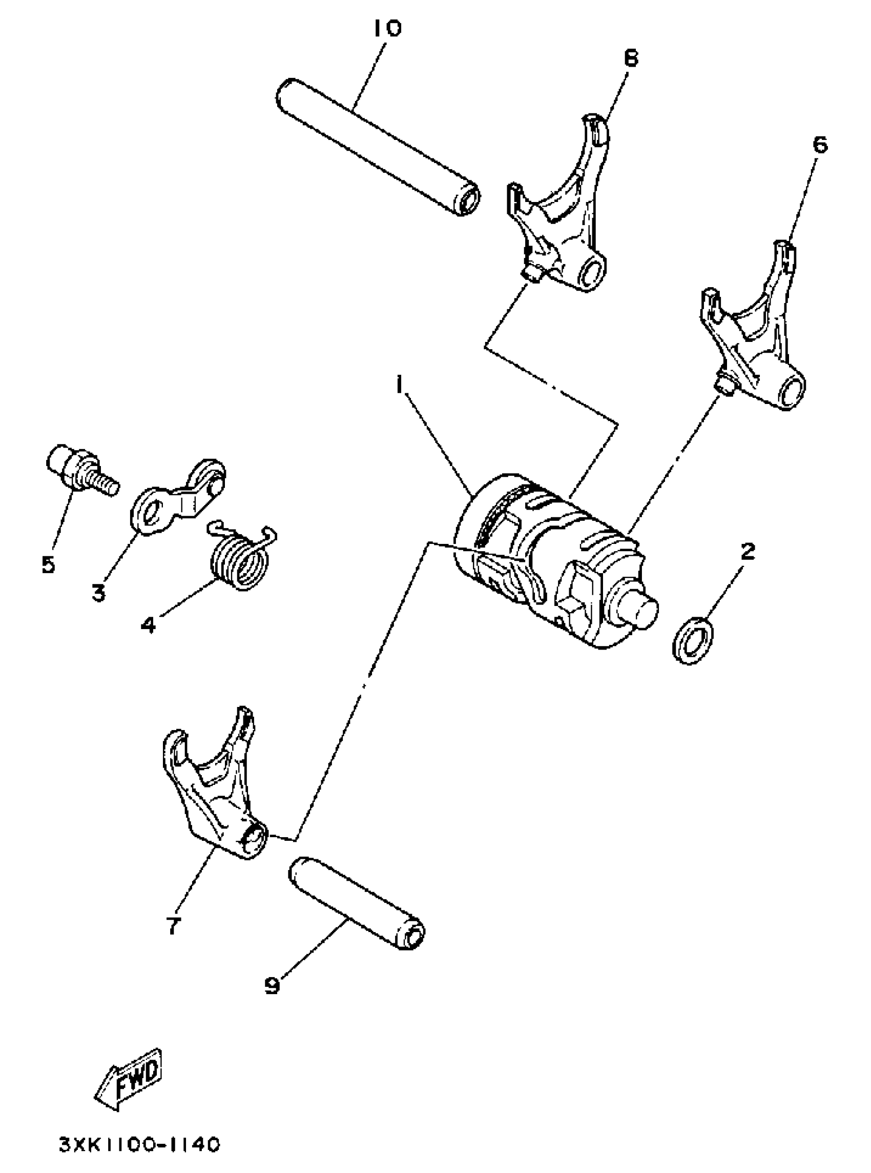 Yamaha WR250ZB (WR250Z) 1991 SHIFT CAM - FORK Diagram