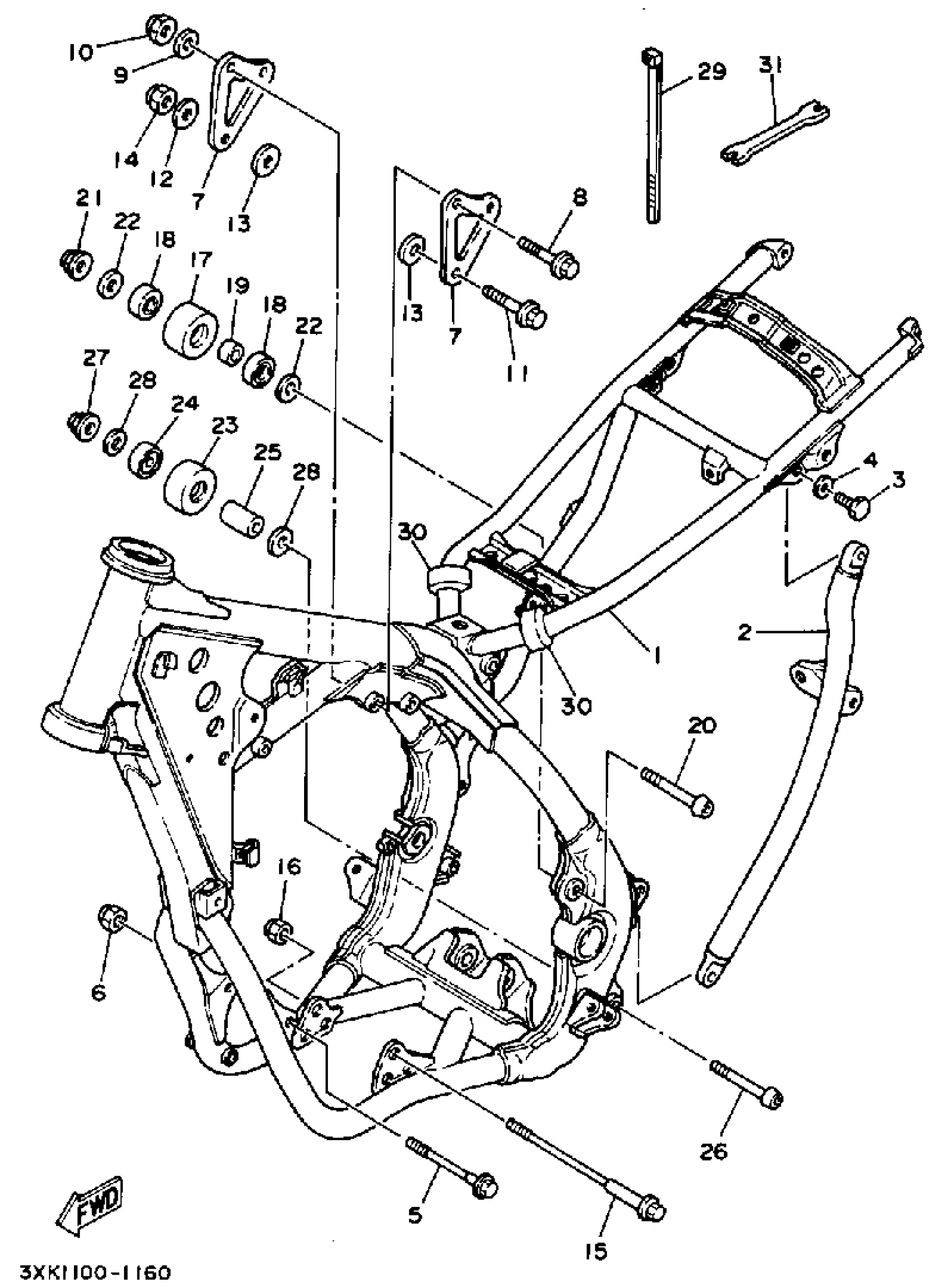 Yamaha WR250ZD (WR250Z) 1992 FRAME Diagram