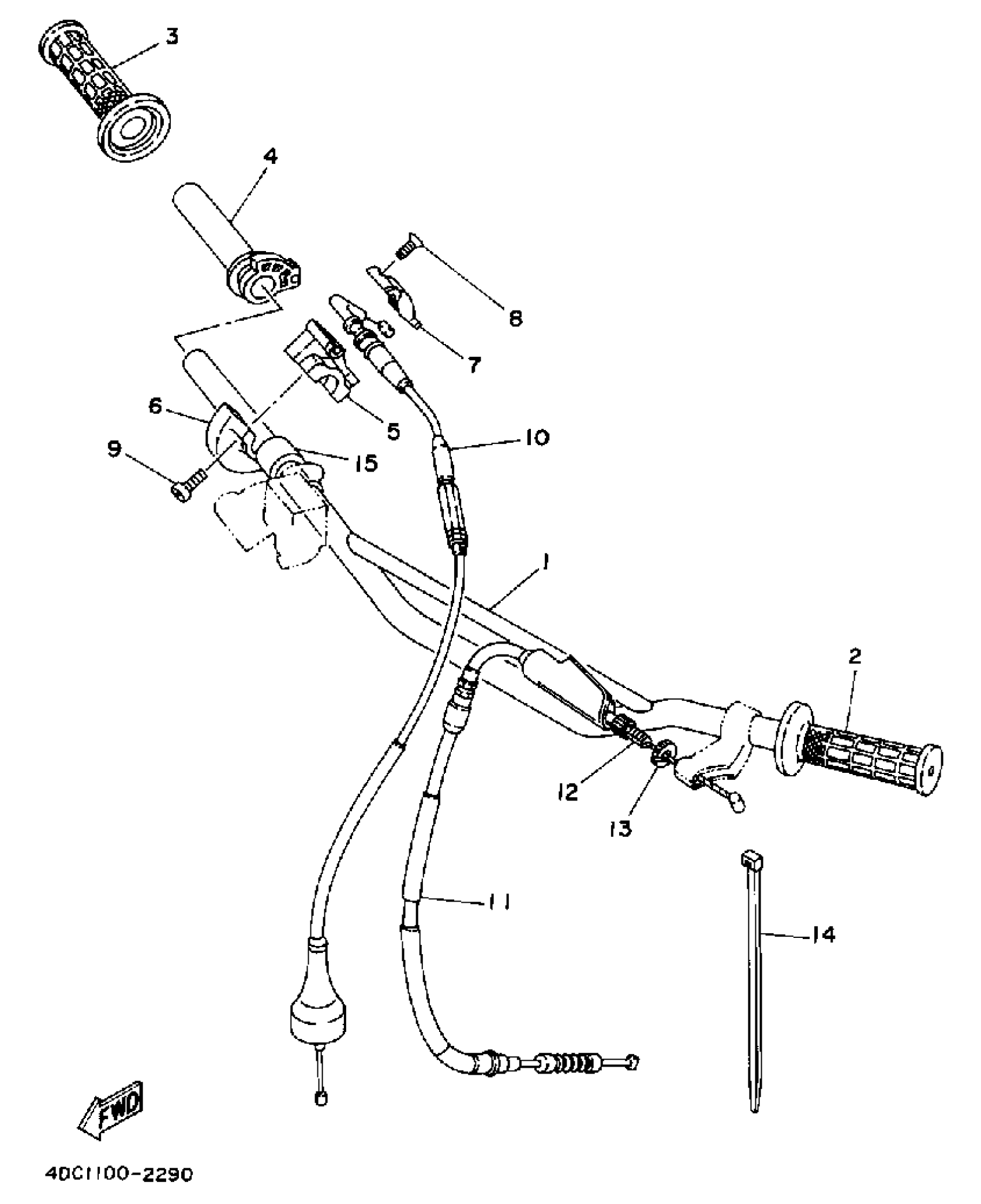 Yamaha WR250ZE (WR250Z) 1993 HANDLEBAR - CABLE Diagram