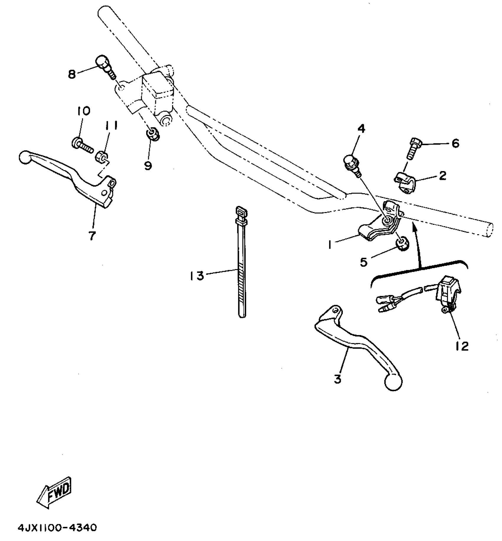 Yamaha WR250ZF (WR250Z) 4JW1 1994 HANDLE SWITCH - LEVER Diagram