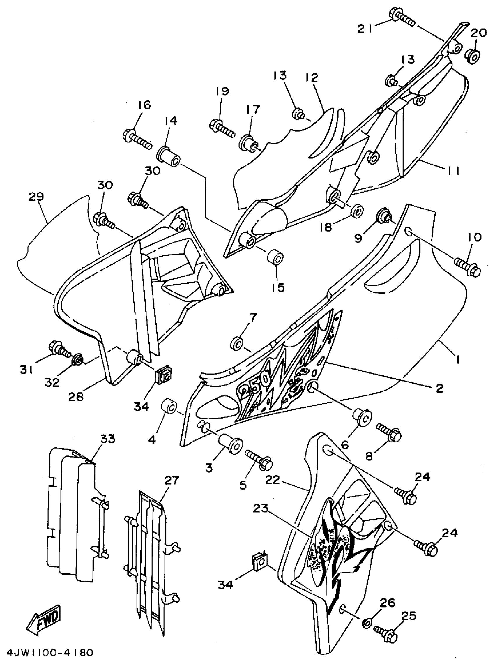 Yamaha WR250ZF (WR250Z) 4JW1 1994 SIDE COVER Diagram