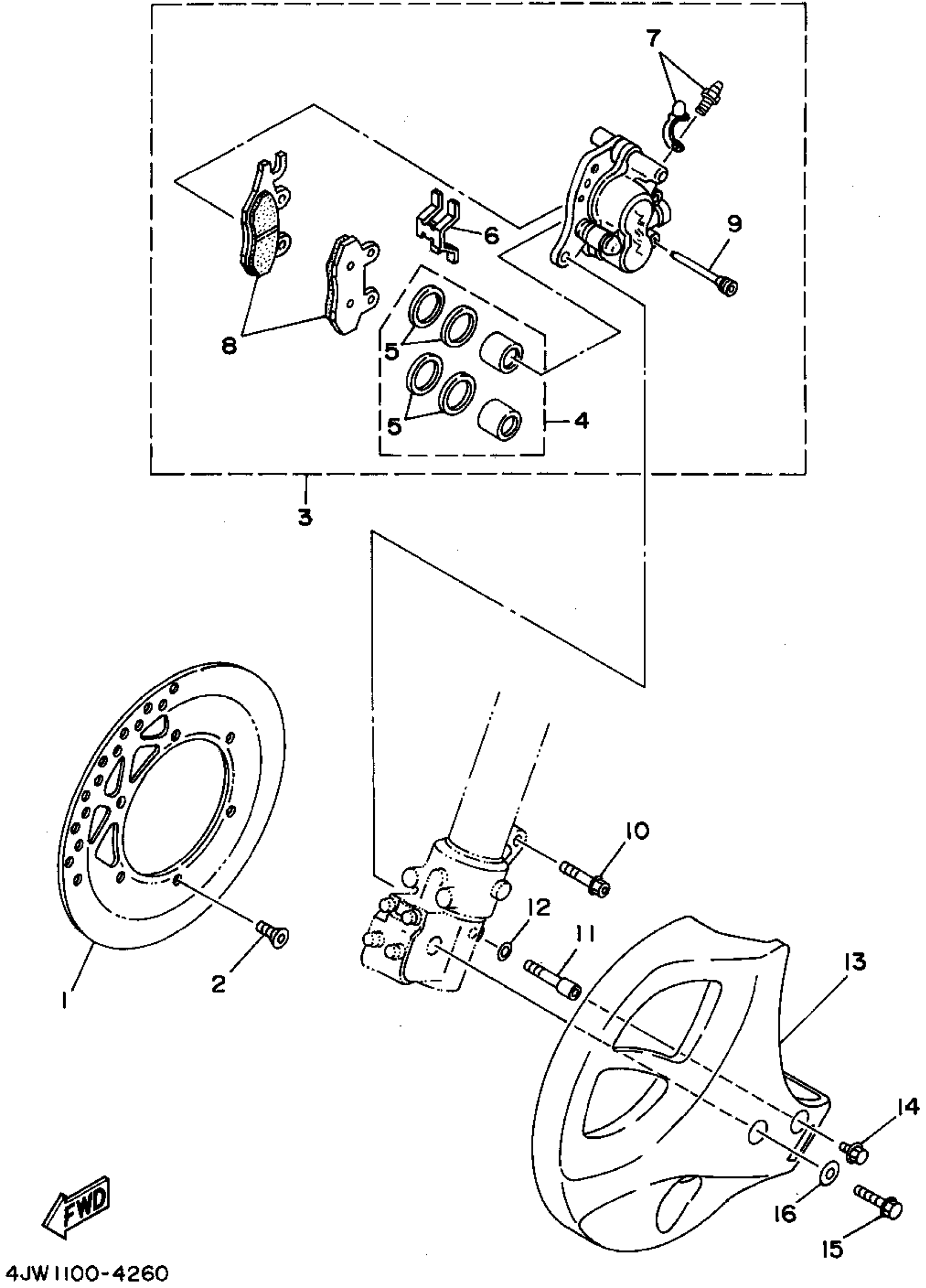 Yamaha WR250ZG (WR250Z) 1995 FRONT BRAKE CALIPER Diagram