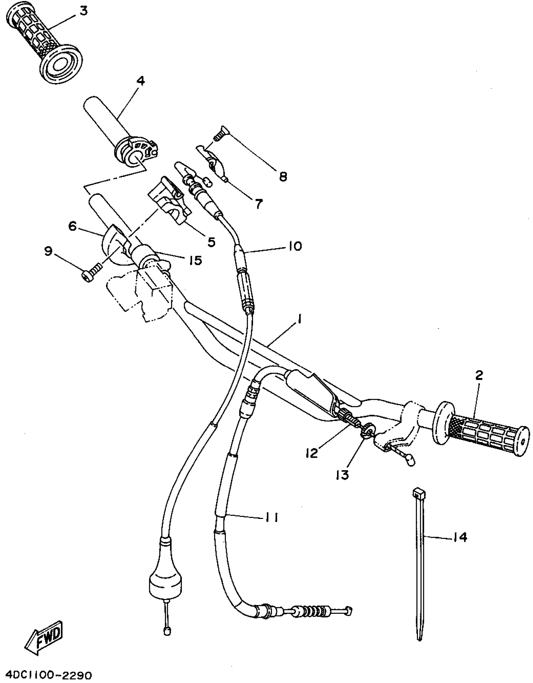Yamaha WR250ZG (WR250Z) 1995 STEERING HANDLE - CABLE Diagram