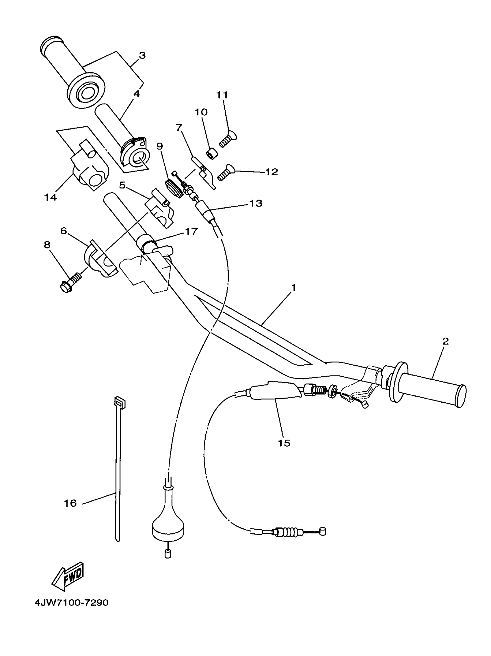 Yamaha WR250ZJ (WR250Z) 1997 STEERING HANDLE - CABLE Diagram