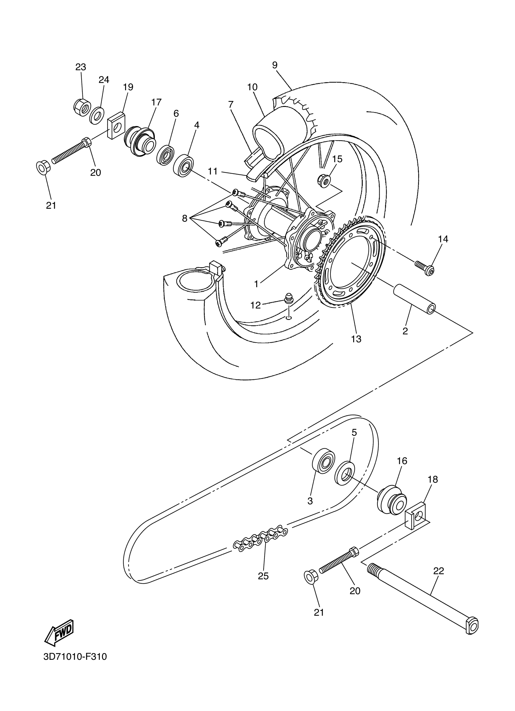 Yamaha WR25RAL (WR250R) 32CK 2011 REAR WHEEL Diagram