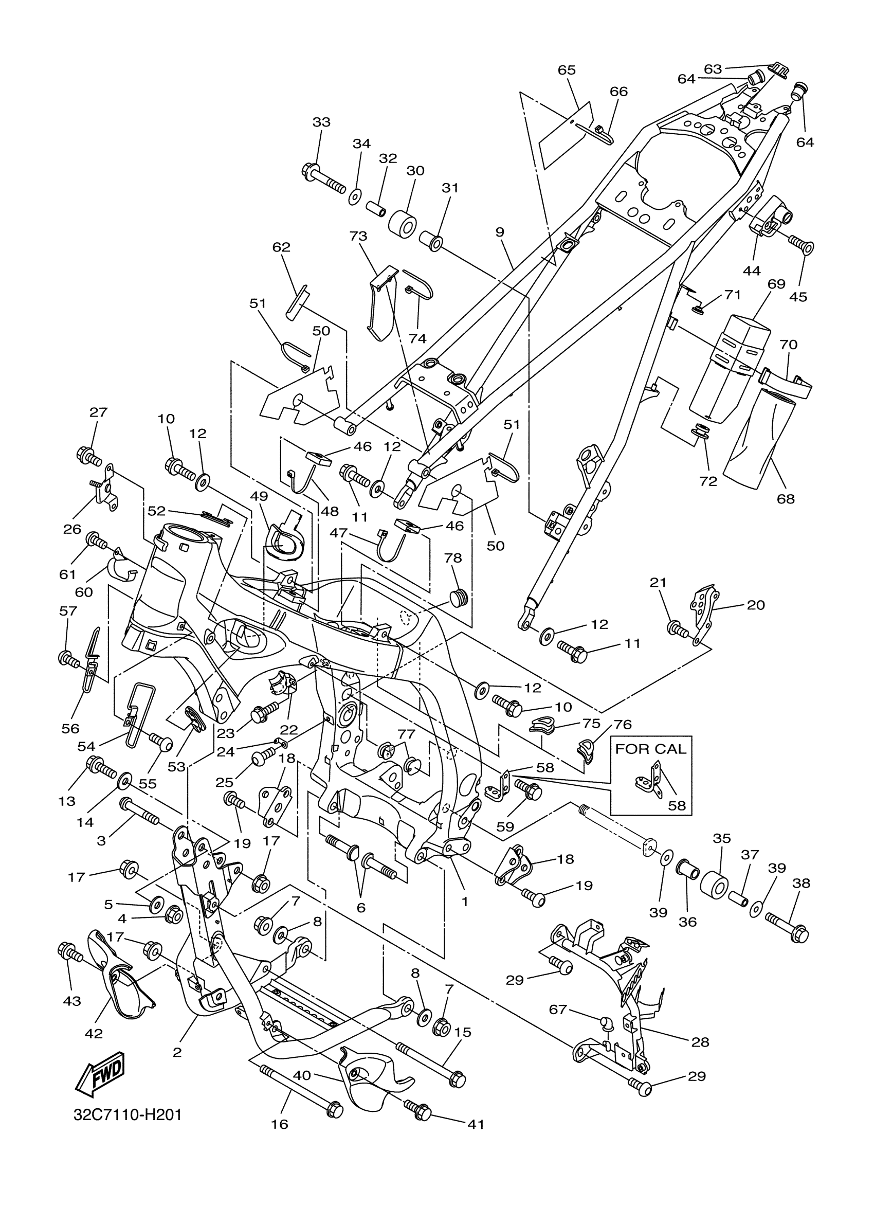 Yamaha WR25RBL (WR25R) 32CS 2012 FRAME Diagram