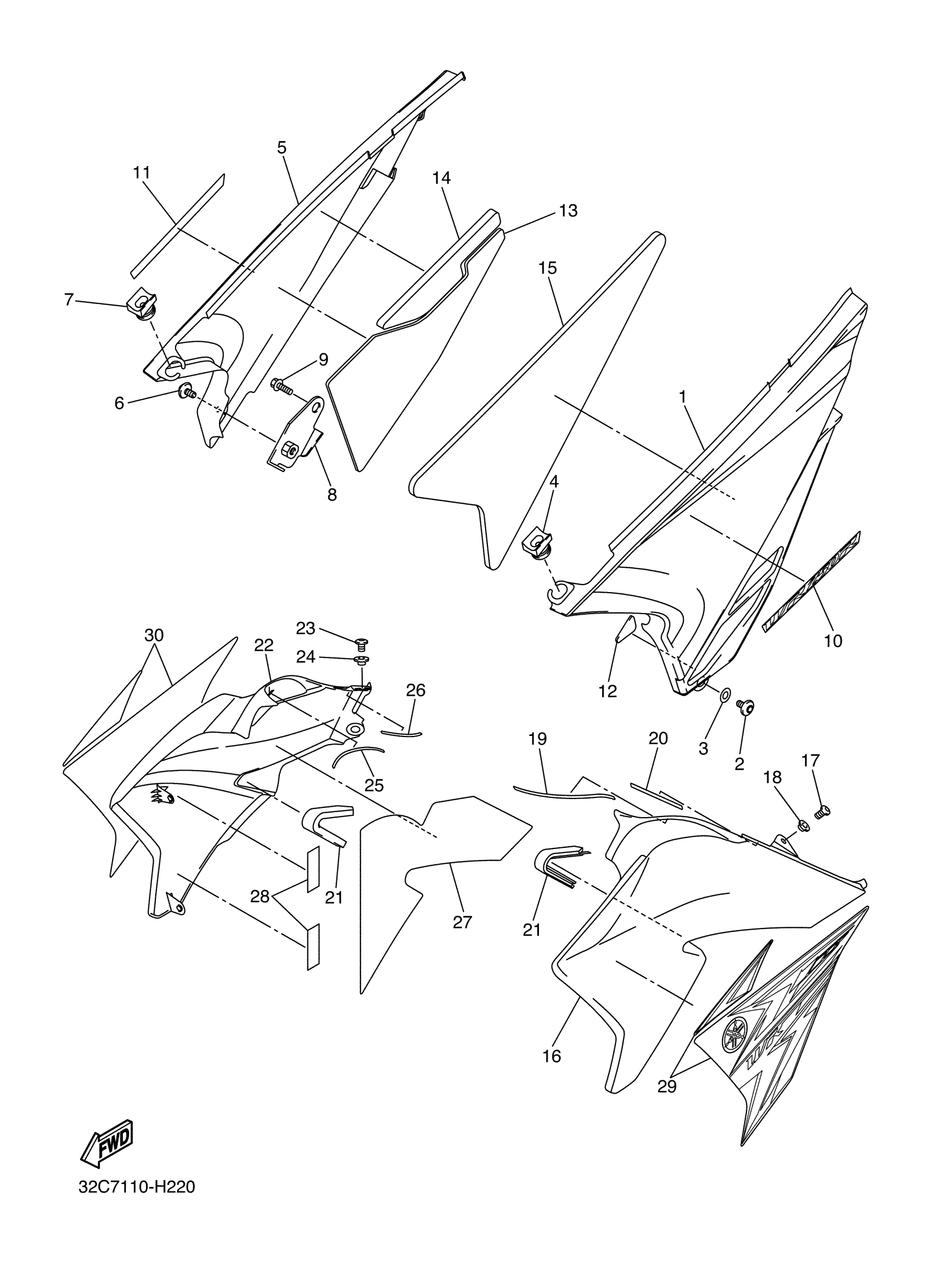 Yamaha WR25RYL (WR250R) 32C7 2009 SIDE COVER Diagram