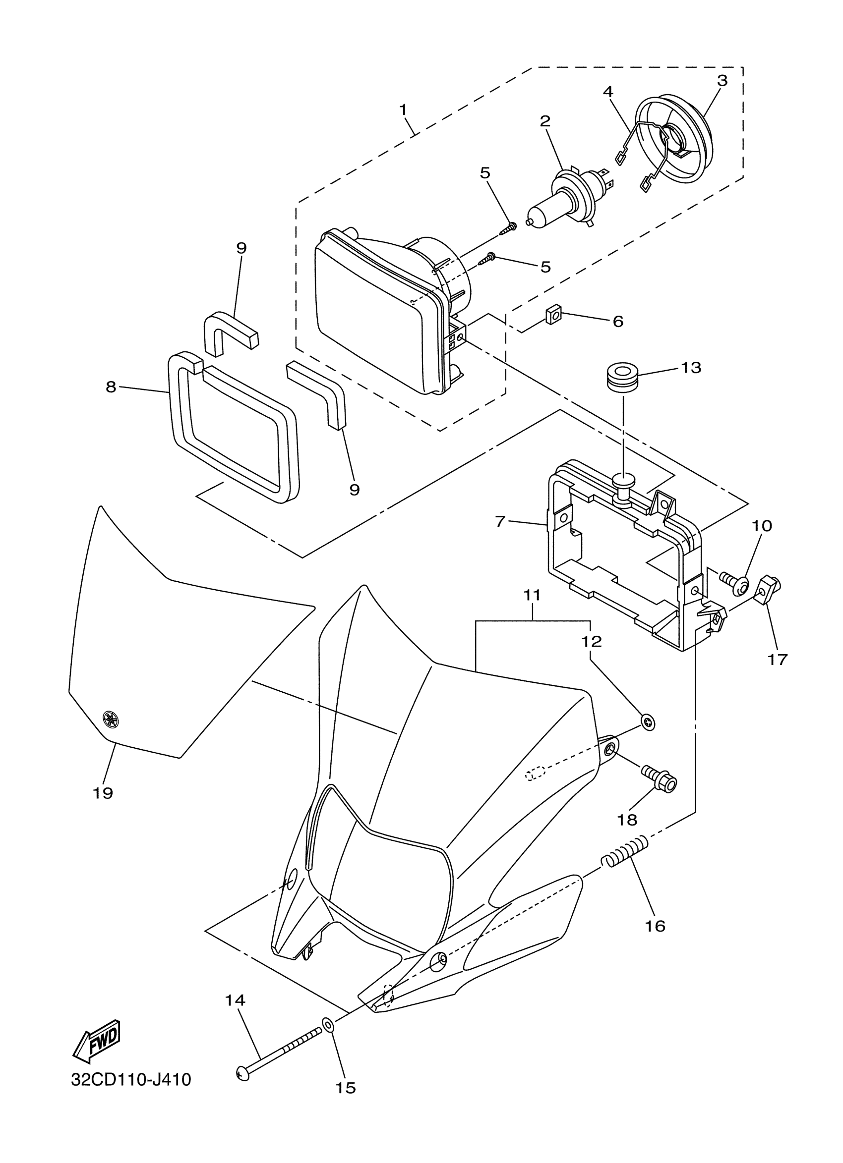 Yamaha WR25RZL (WR250R) 32CD 2010 HEADLIGHT Diagram