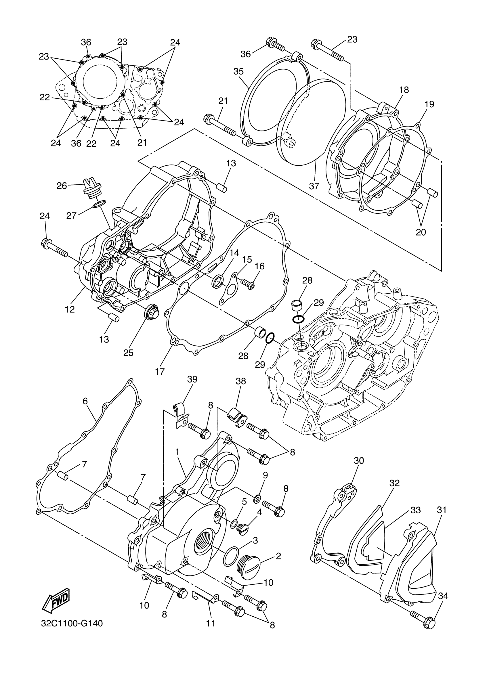 Yamaha WR25XXL (WR250X) 32C2 2008 CRANKCASE COVER 1 Diagram