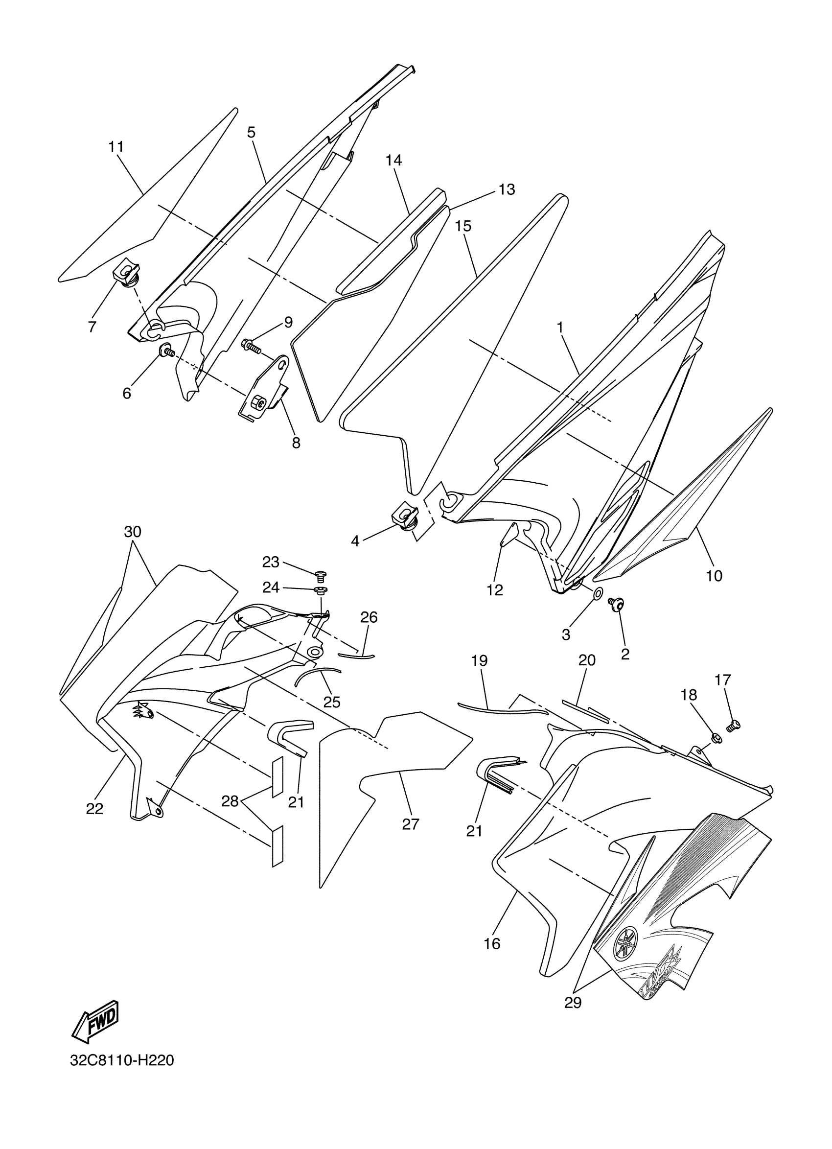 Yamaha WR25XYCB (WR250X CA) 32CA 2009 SIDE COVER Diagram