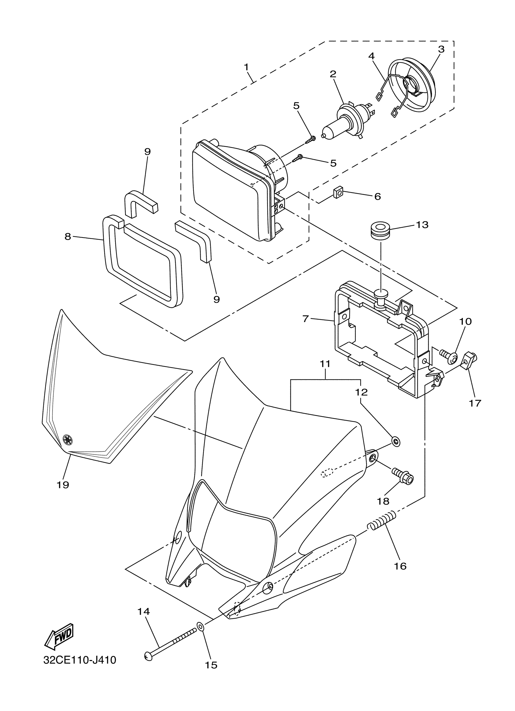 Yamaha WR25XZW (WR250X) 32CE 2010 HEADLIGHT Diagram