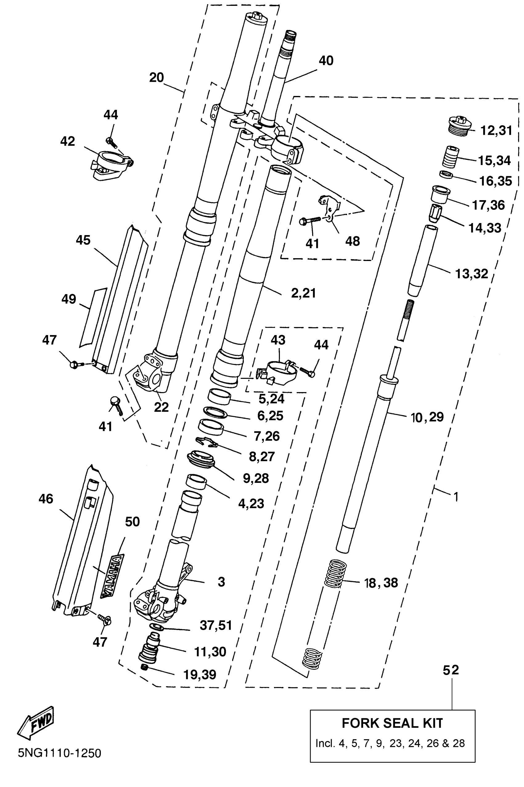 Yamaha WR426FN (WR426F) 5NG1 2001 FRONT FORK Diagram