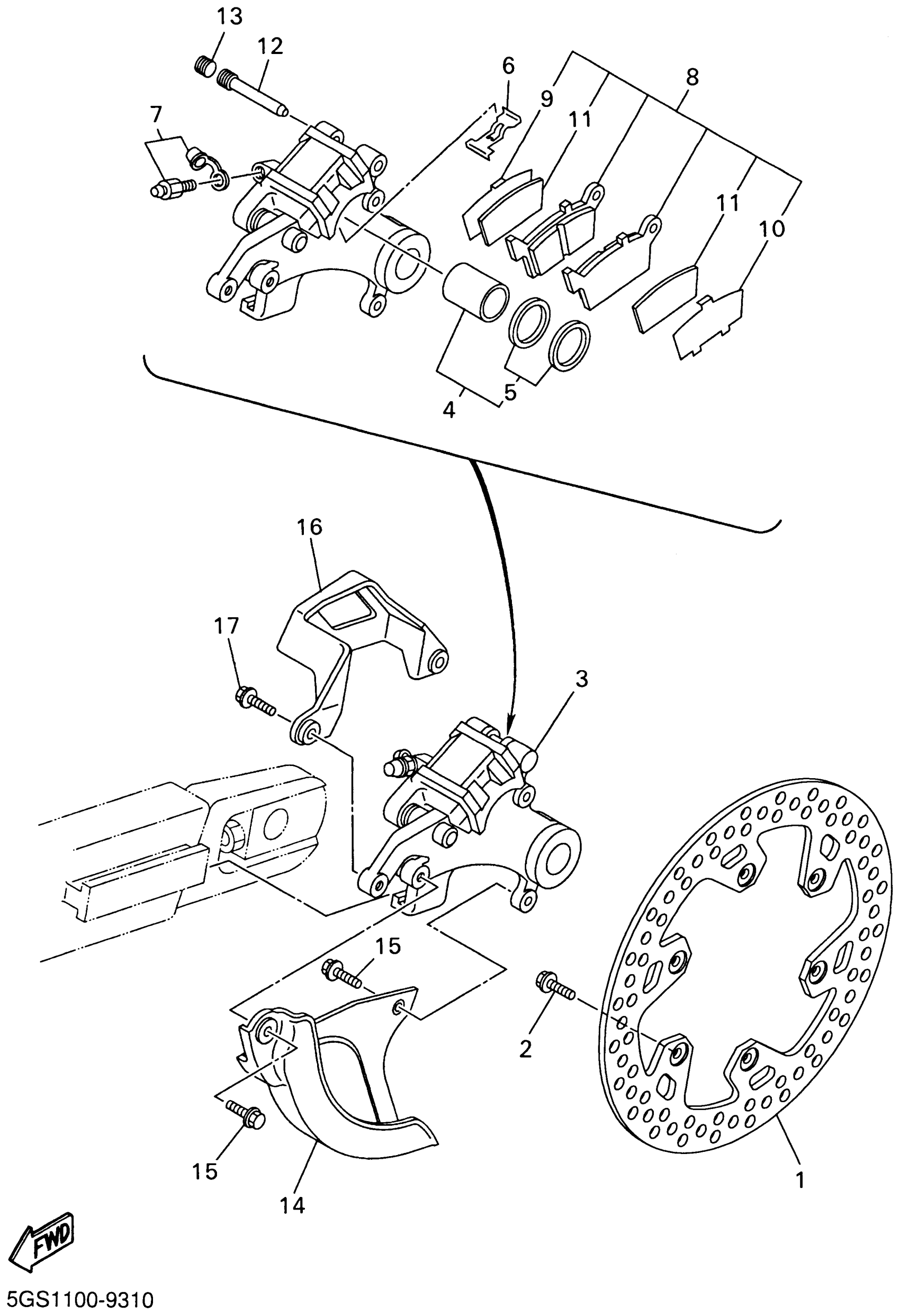 Yamaha WR426FN (WR426F) 5NG1 2001 REAR BRAKE CALIPER Diagram