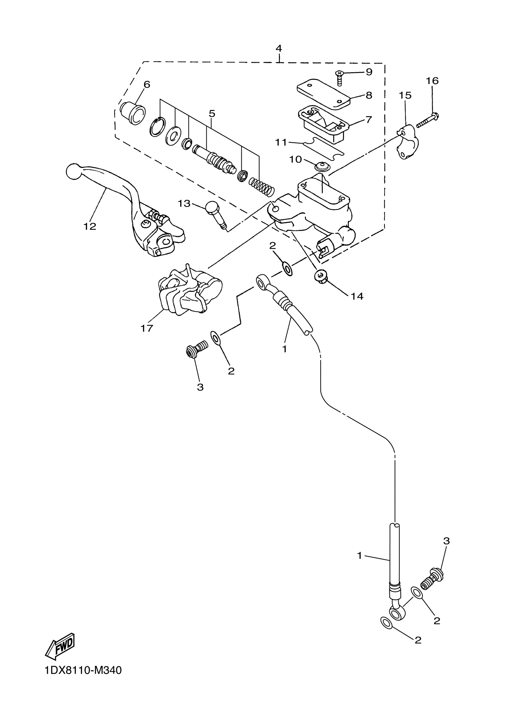 Yamaha WR450FF (WR450F) 1DXH 2015 FRONT MASTER CYLINDER Diagram