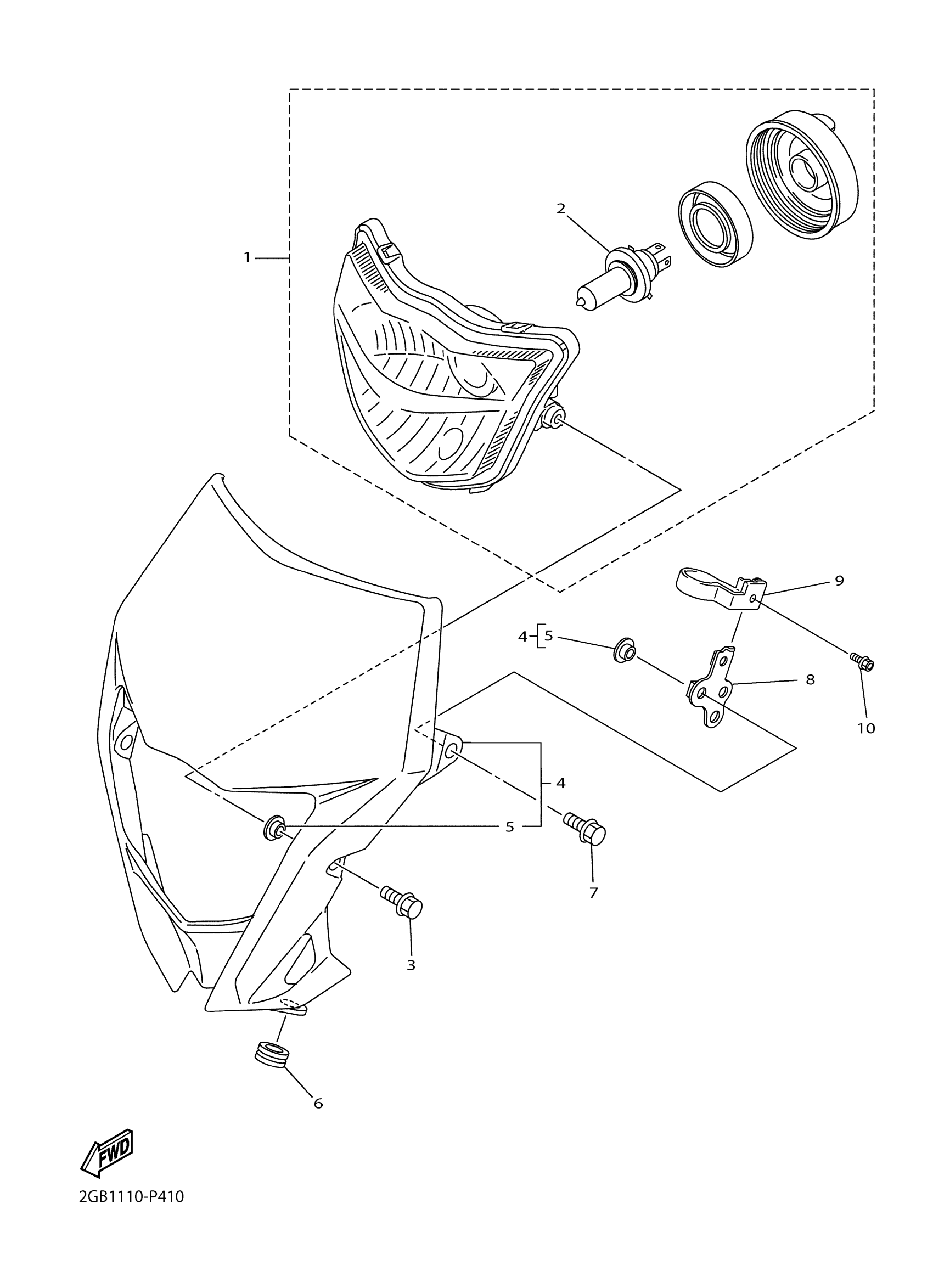 Yamaha WR450FJ (WR450F) 2GCA 2018 HEADLIGHT Diagram