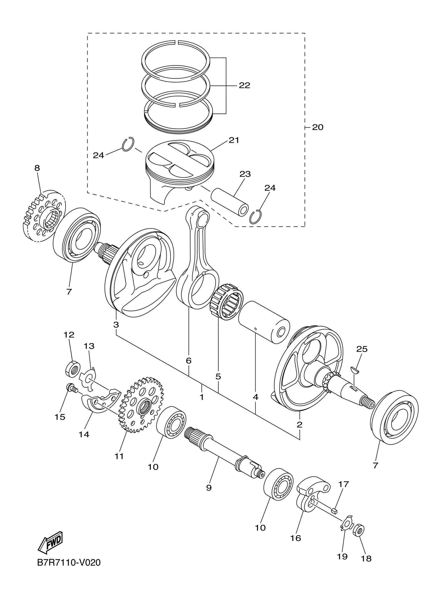 Yamaha WR450FL (WR450F) B7R7 2020 CRANKSHAFT PISTON Diagram