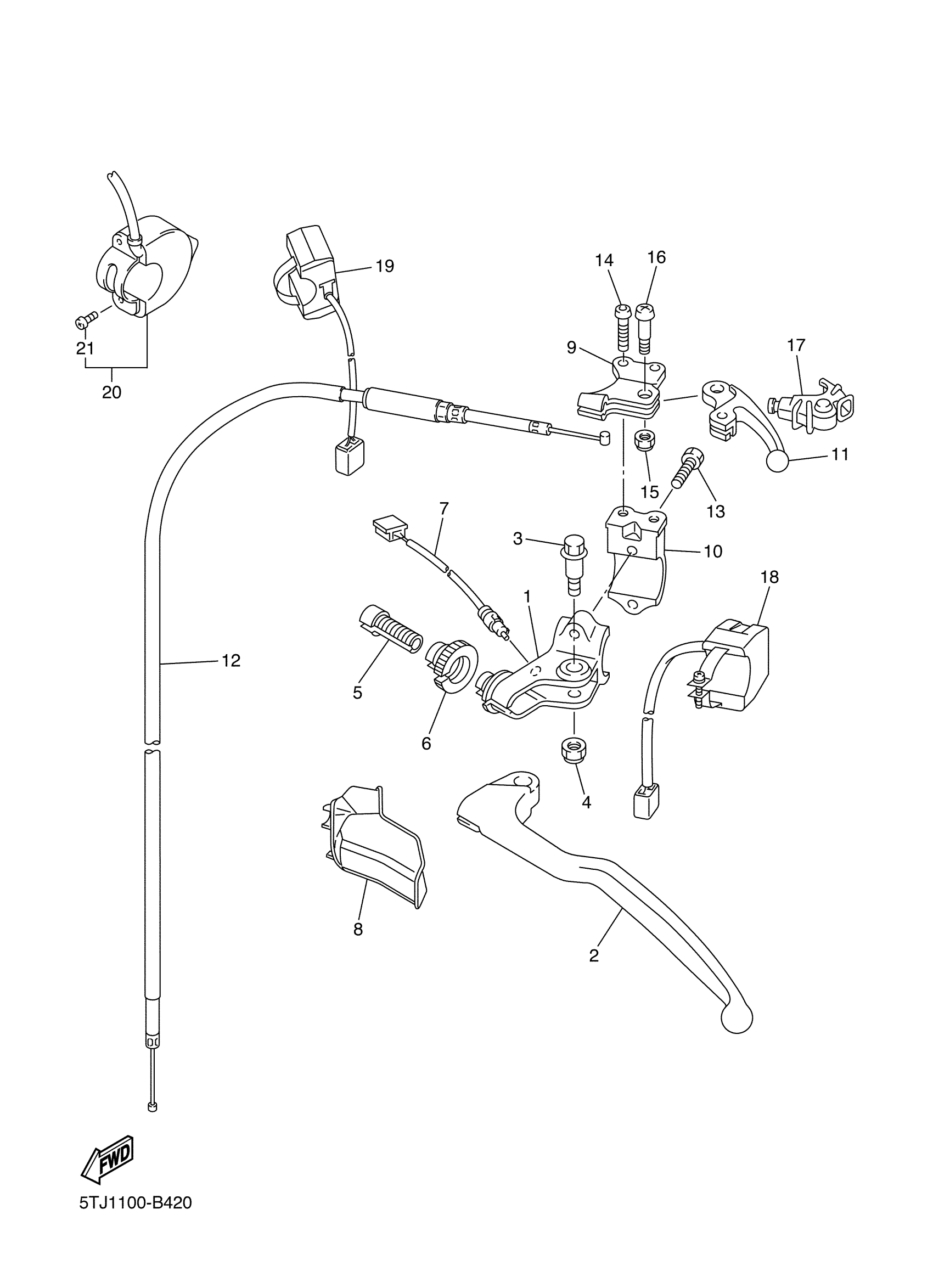Yamaha WR450FR (WR450F) 5TJ1 2003 HANDLE SWITCH LEVER Diagram