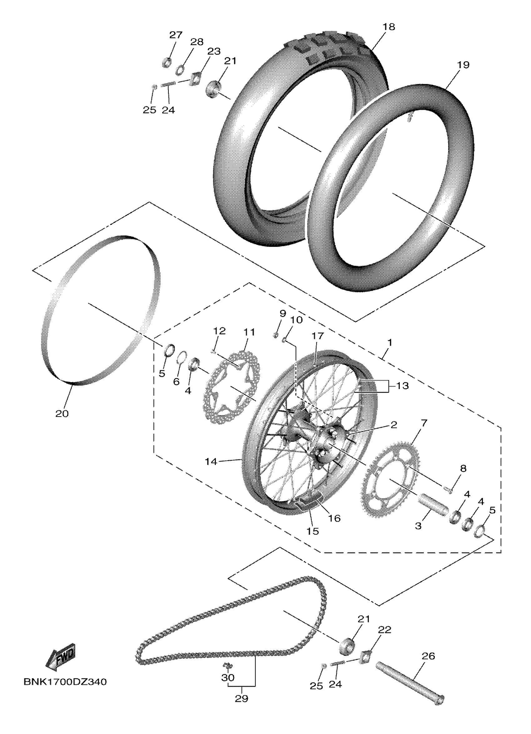Yamaha WR450FR1 (WR450F) BNK2 2024 REAR WHEEL Diagram