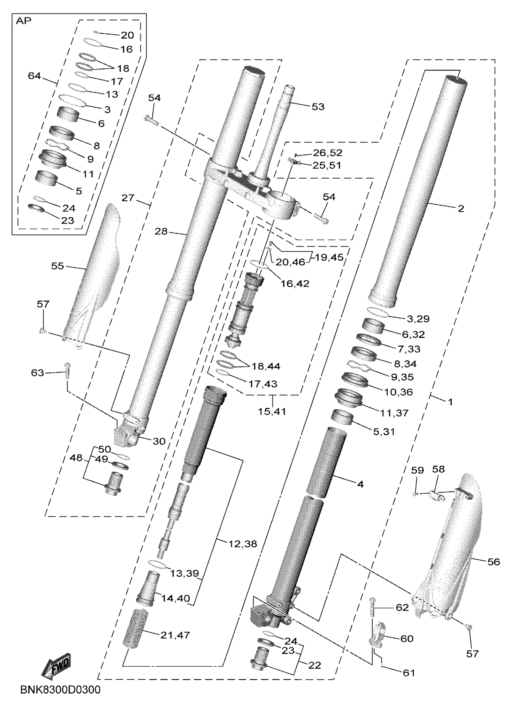 Yamaha WR450FT1 (WR450F) DP03 2026 FRONT FORK Diagram