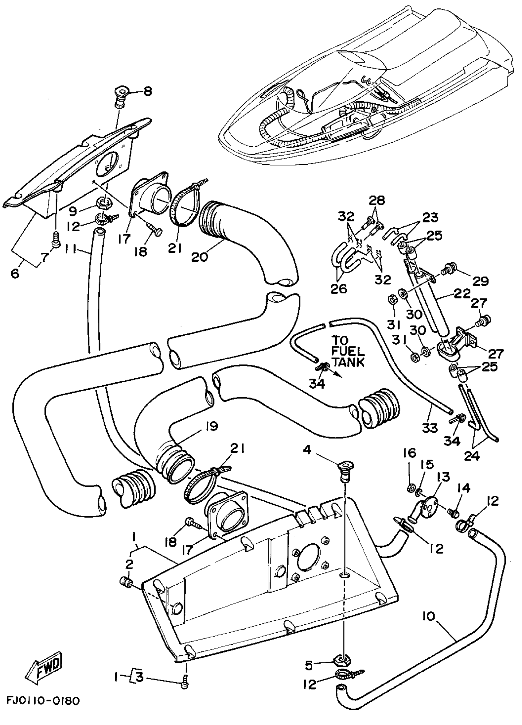 Yamaha WRA650D (WAVE RUNNER III) 1990 VENTILATION Diagram