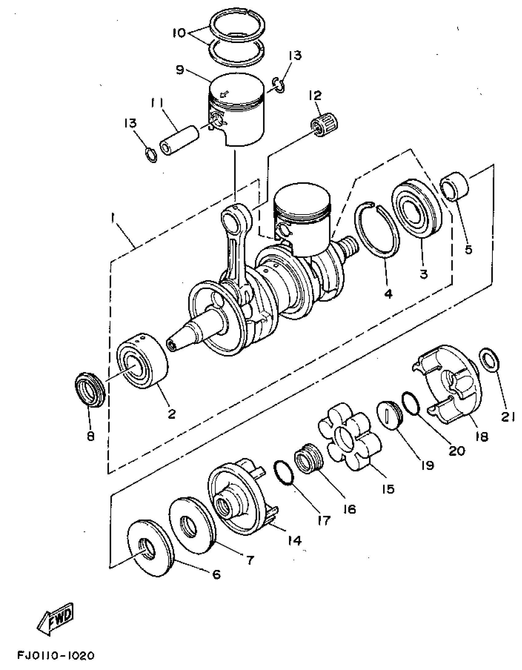 Yamaha WRA650Q (WAVE RUNNER III) 1992 CRANKSHAFT - PISTON Diagram