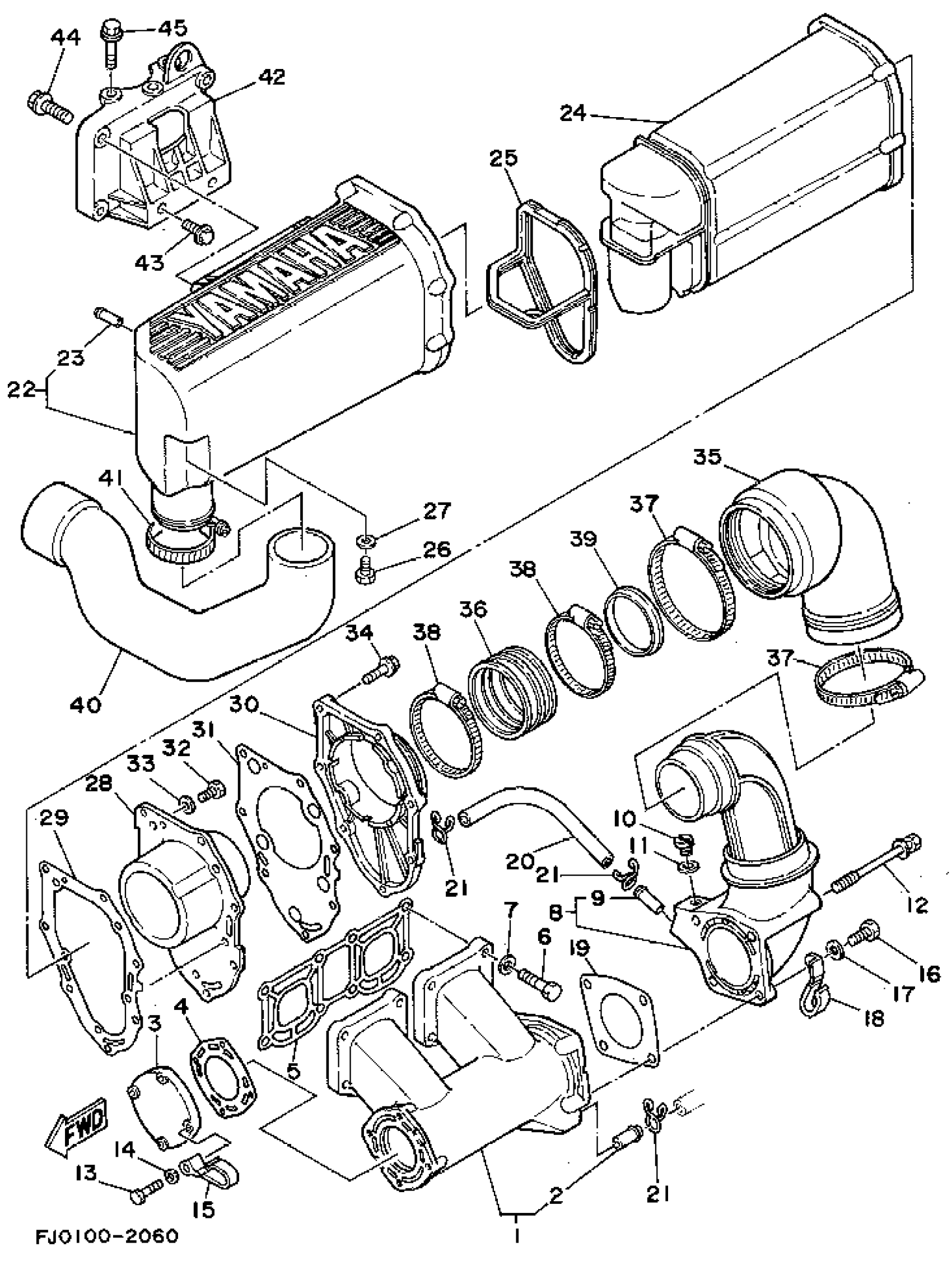 Yamaha WRA650Q (WAVE RUNNER III) 1992 EXHAUST 1 Diagram