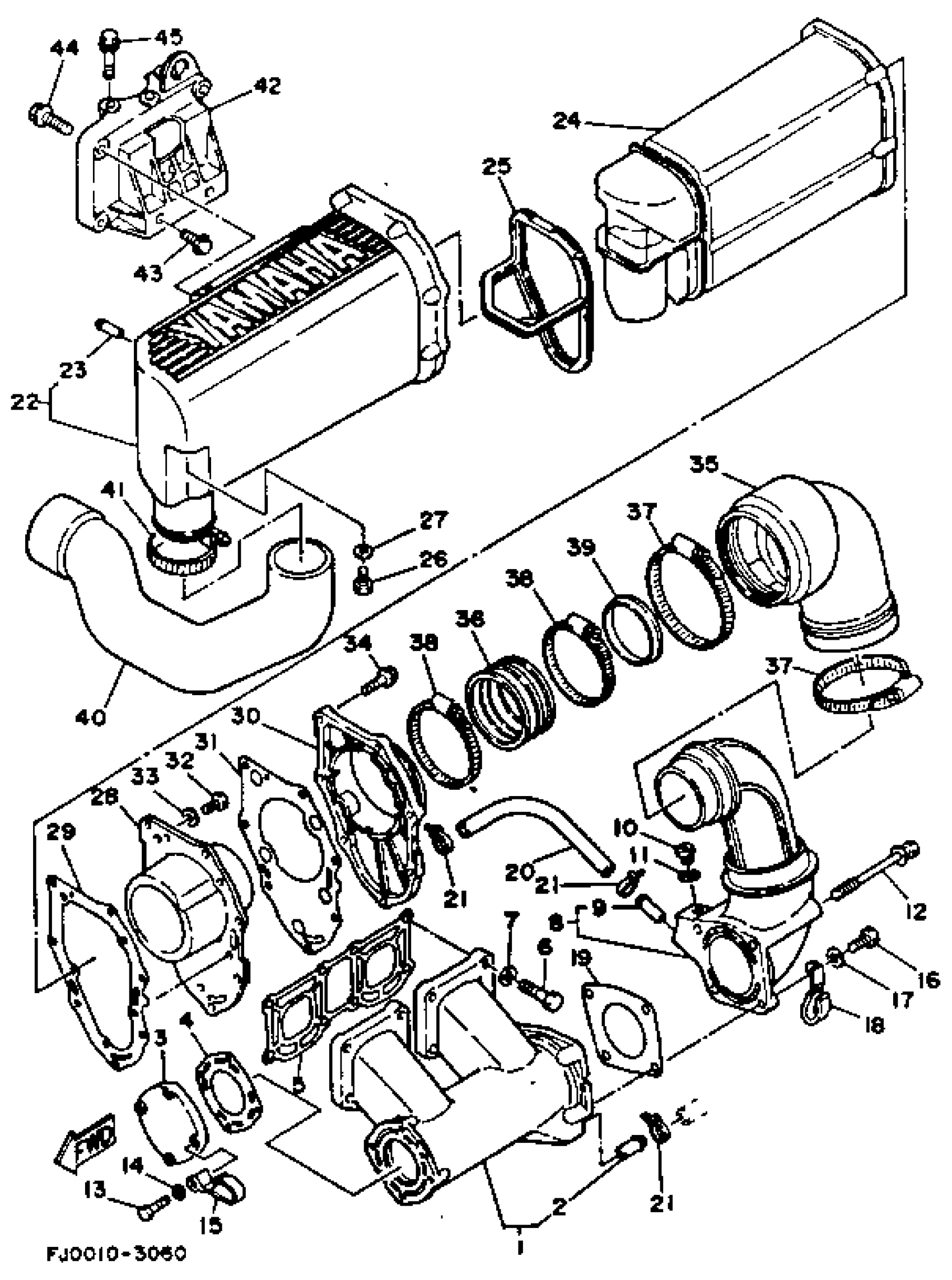 Yamaha WRA650R (WAVE RUNNER III) 1993 EXHAUST 1 Diagram