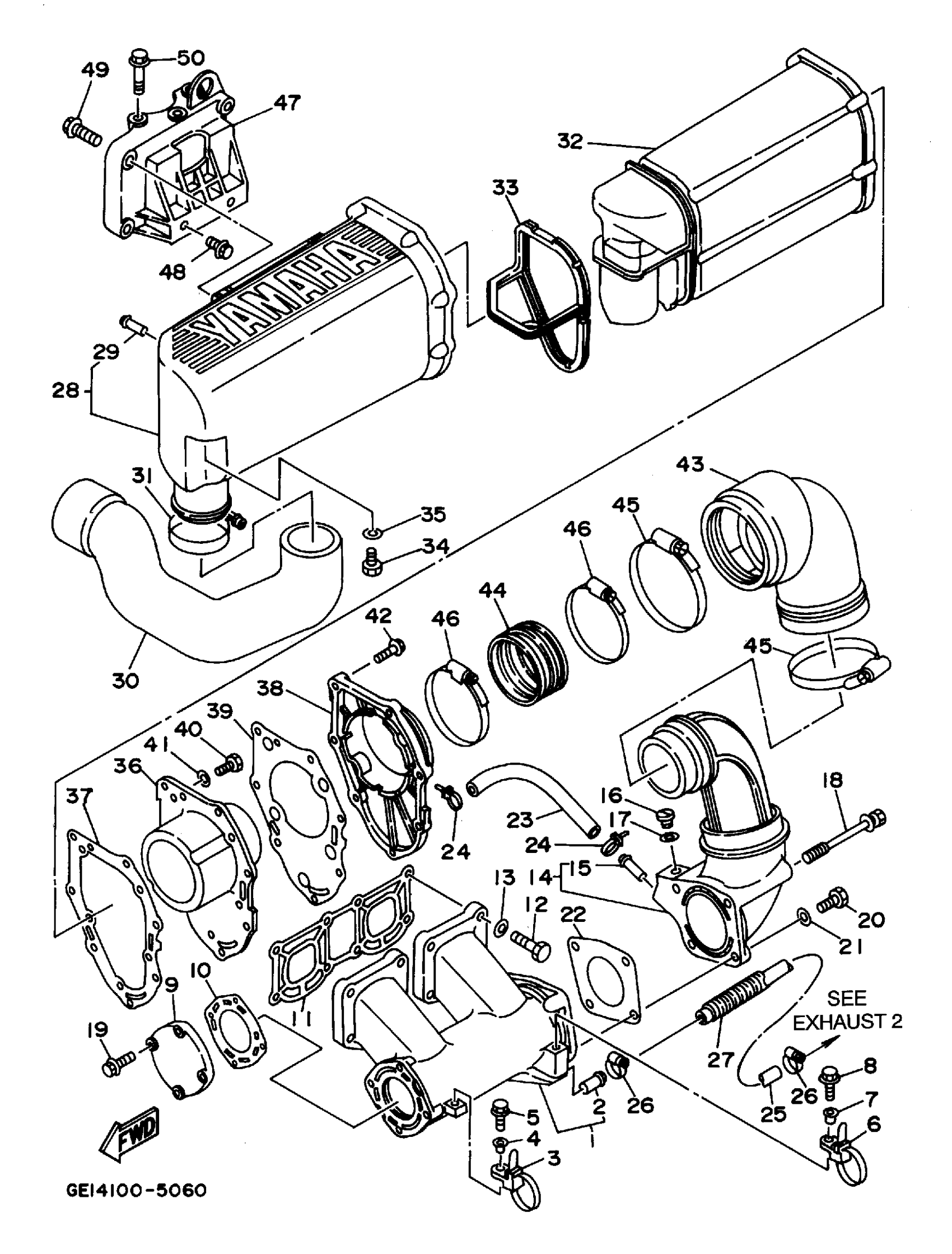Yamaha WRA700T (WAVE RUNNER III GP) 1995 EXHAUST 1 Diagram