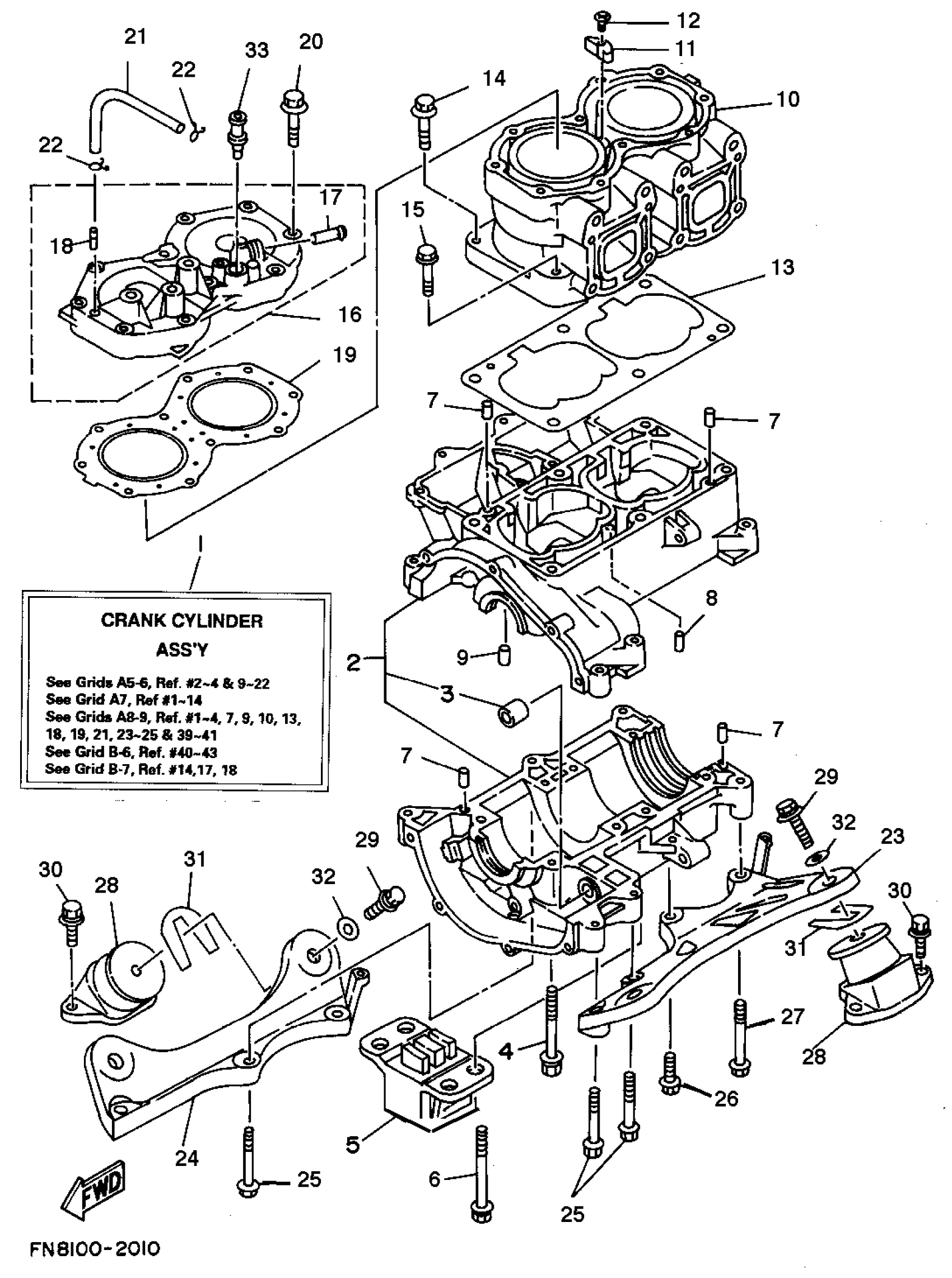 Yamaha WRB700S (WAVE RUNNER PRO VXR) GD05 1994 CYLINDER - CRANKCASE Diagram