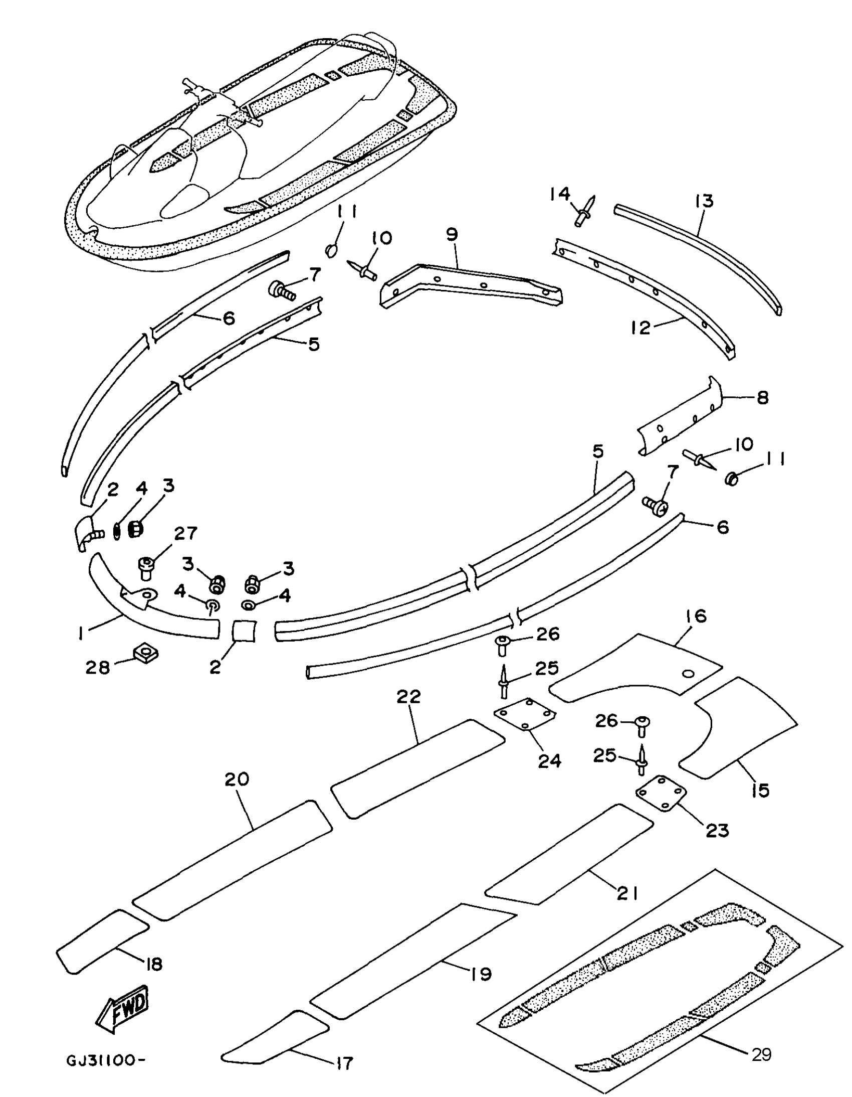 Yamaha WVT1100U (WAVE VENTURE 1100) 1996 GUNWALE MAT Diagram