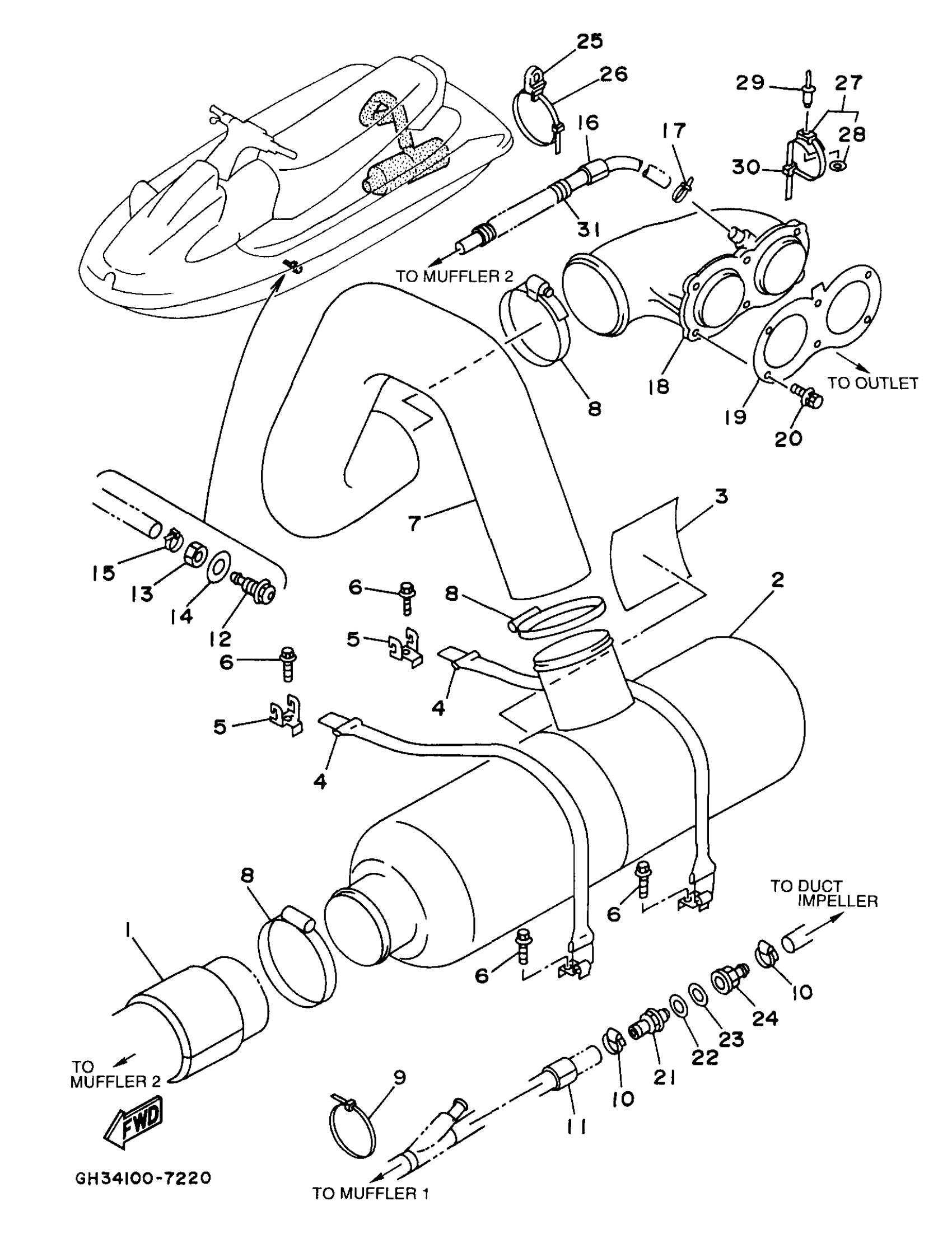 Yamaha WVT1100V (WAVE VENTURE 1100) GH34-35 1997 EXHAUST 2 Diagram