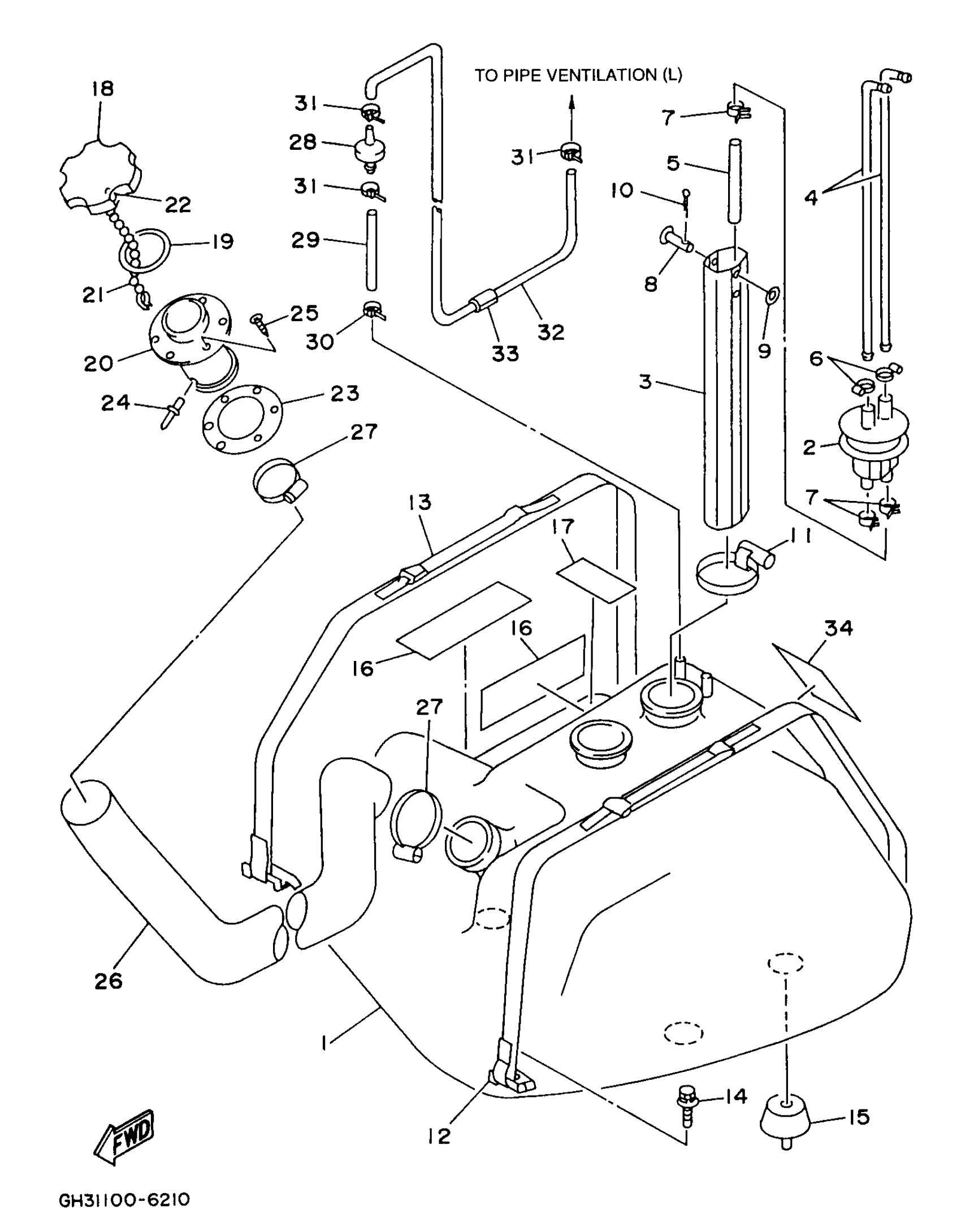 Yamaha WVT1100V (WAVE VENTURE 1100) GH34-35 1997 FUEL TANK Diagram