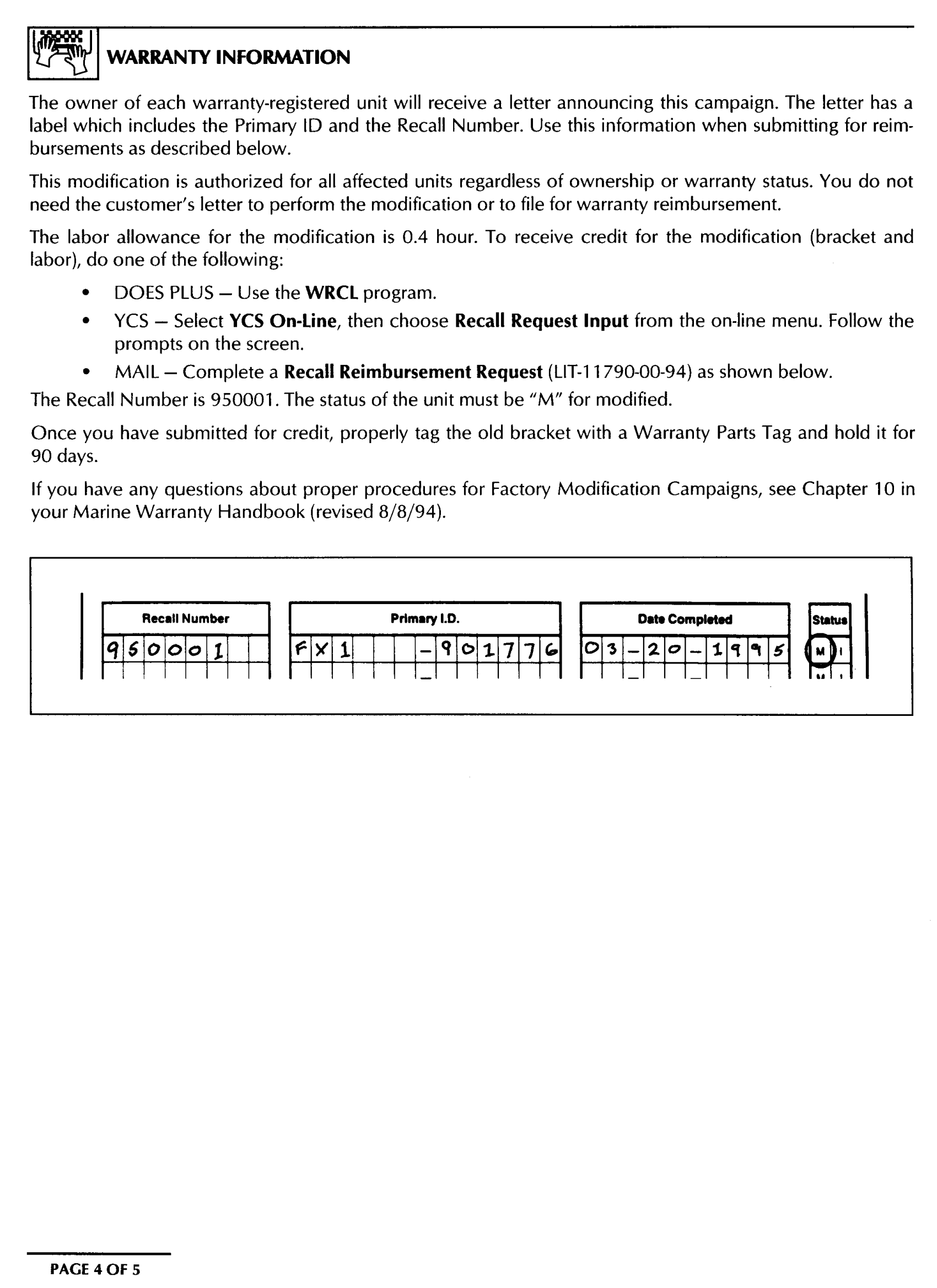 * AUDIO WARRANTY - SERVICE PG - 1 *
