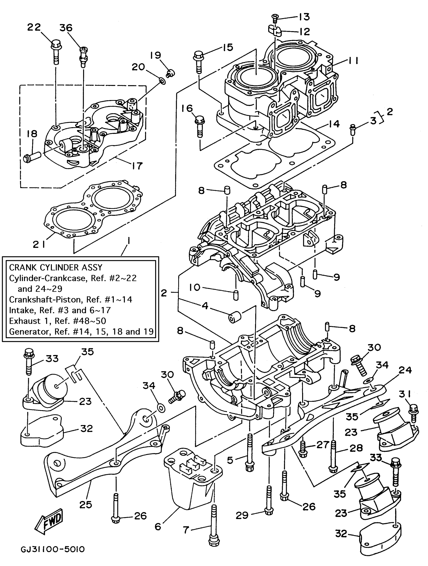 Yamaha WVT700U (WAVE VENTURE 700) 1996 CYLINDER - CRANKCASE Diagram