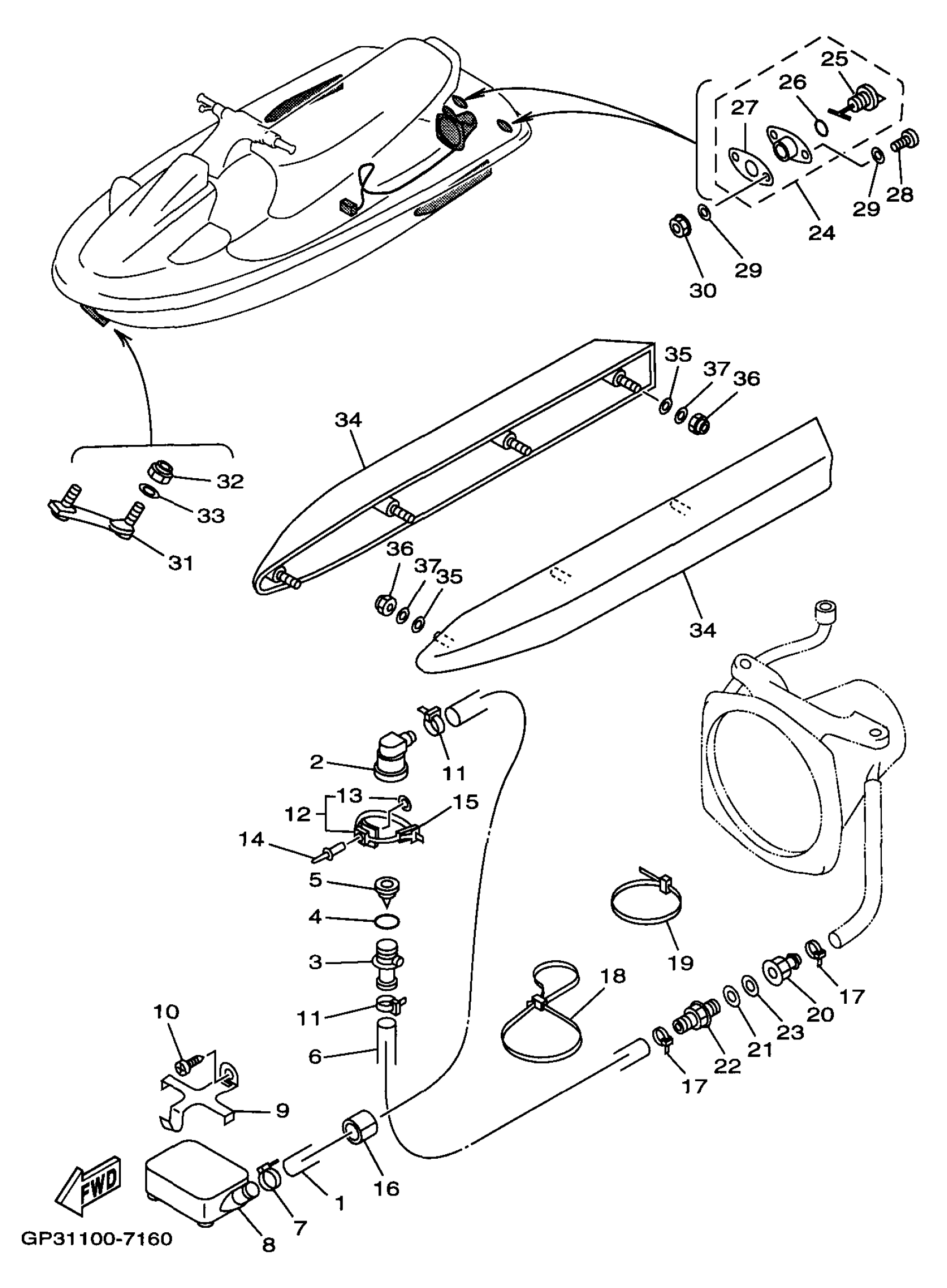Yamaha WVT760V (WAVE VENTURE 760) 65R 1997 HULL DECK Diagram