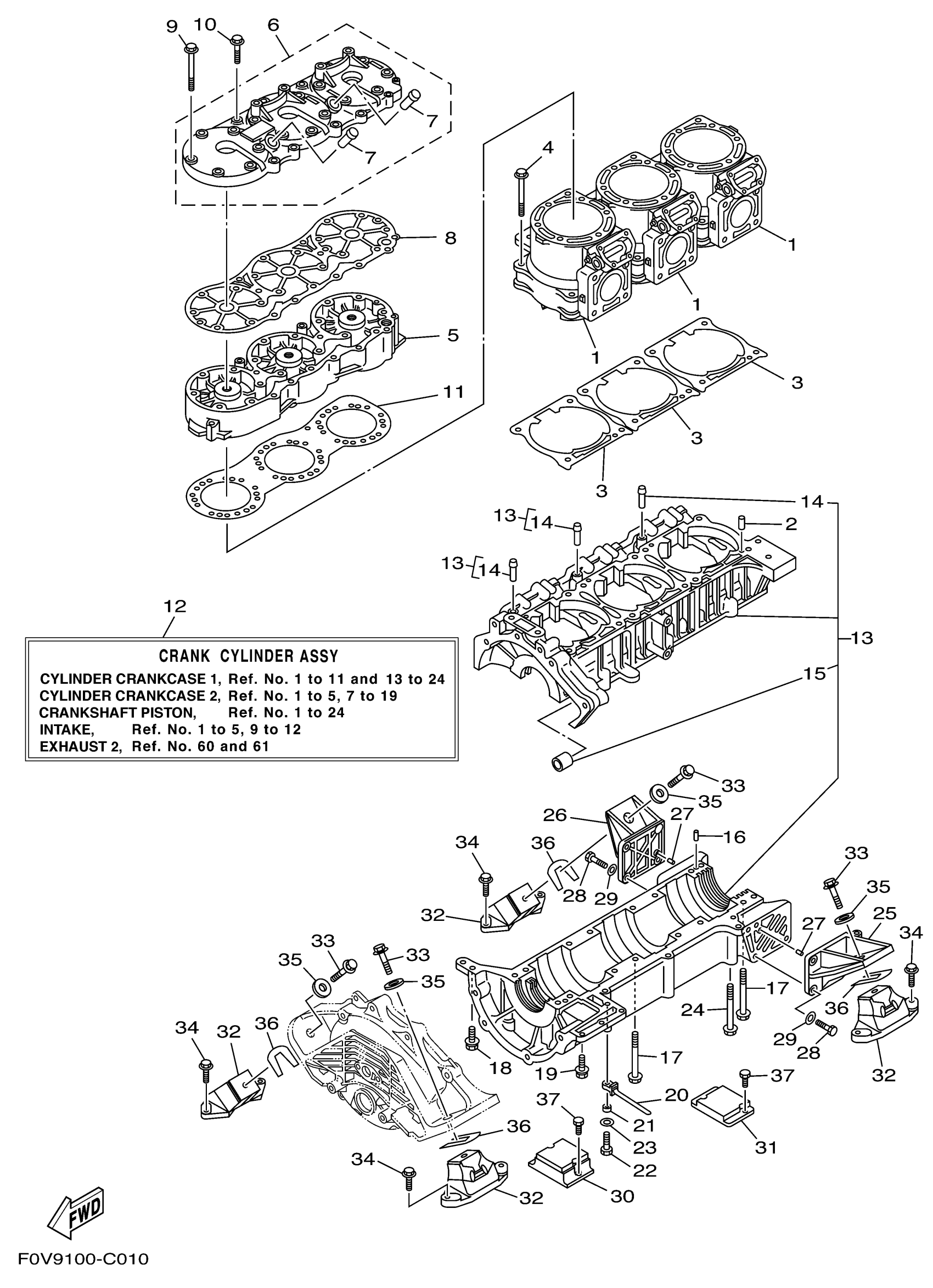 Yamaha XA1200AC (XLT1200) F0V9 2004 CYLINDER CRANKCASE 1 Diagram