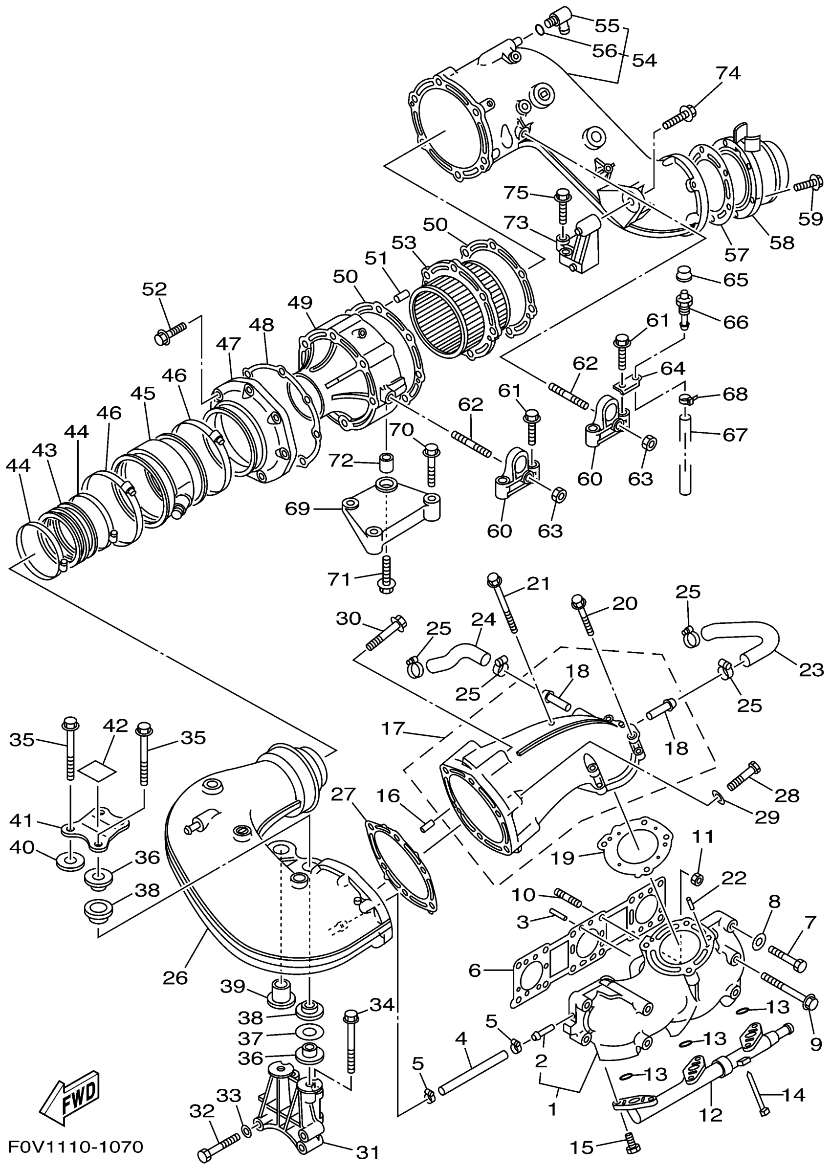 Yamaha XA1200AZ (XLT1200) F0V1 2001 EXHAUST 1 Diagram